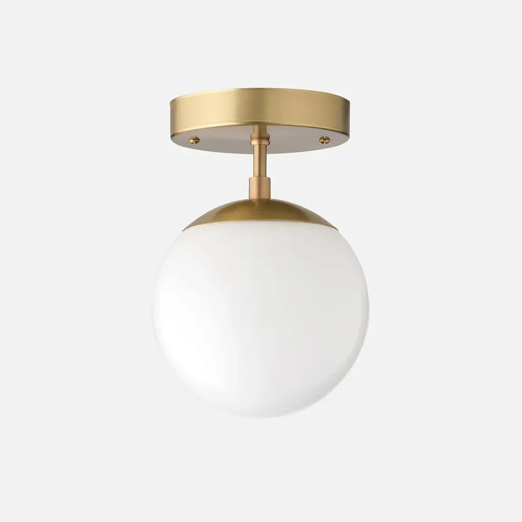 The Nova flashes starry brilliance in any space it’s seen in. Its orb-like shade nods to the geometric tendencies of mid-century modern design, but the Nova also blends into a variety of more traditional rooms due to its craftsmanship and quality of light. Available with an opal or clear glass shade and four elegant paint or patina options. Finished and assembled by hand in our Portland factory. A Schoolhouse Original.