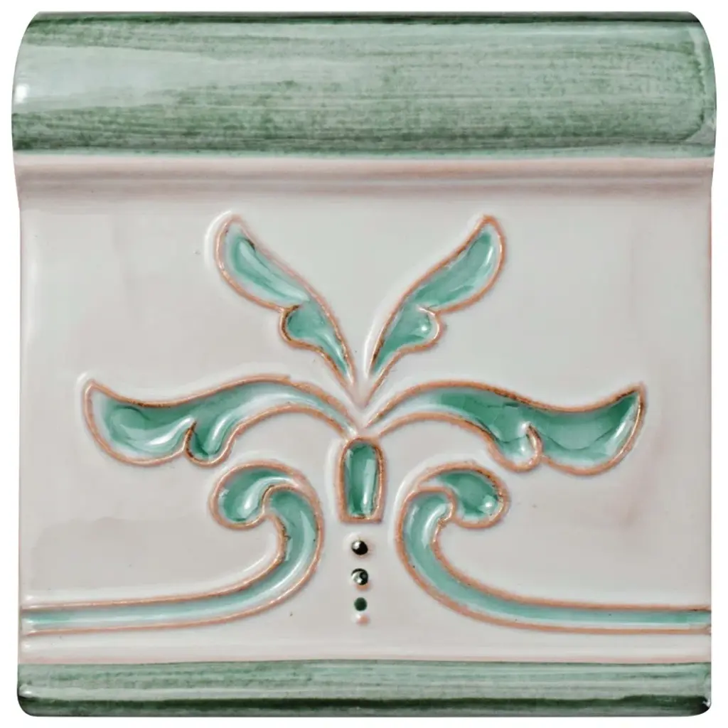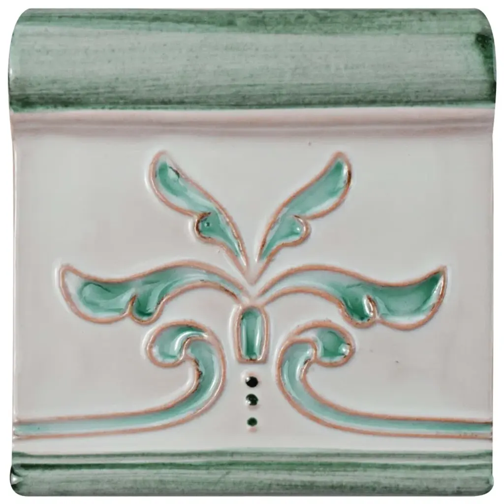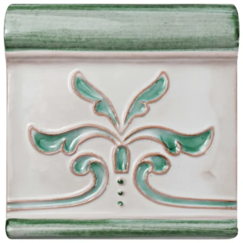 Capture a handcrafted, artisan appearance that is inspired by twentieth-century Spain with our bullnose tile trim. Set on a milky hand-painted white glaze, the center floral design is sunken into the surface of the trim and has a crackle finish, giving it a dimensional feel. Spots of the red ceramic peek through the bisque glaze on the elevated designs, creating the authentic artisan look. The cobalt color seen throughout has a watercolor look that is hand-painted offering a great accent for your wall installation. Due to a partially handmade process, each tile could offer slight size variation. This glossy old-world tile is great for accenting other items in the Frisia program as separation between two tiles or as a finishing edge. Intended for interior wall use, this tile is an excellent selection to accent your backsplash, shower wall, fireplace facade or accent wall. It is necessary that you seal this tile before grouting to prevent the absorption of staining agents over time. Tile is the better choice for your space. This tile is made from natural ingredients, making it a healthy choice as it is free from allergens, VOCs, formaldehyde and PVC.