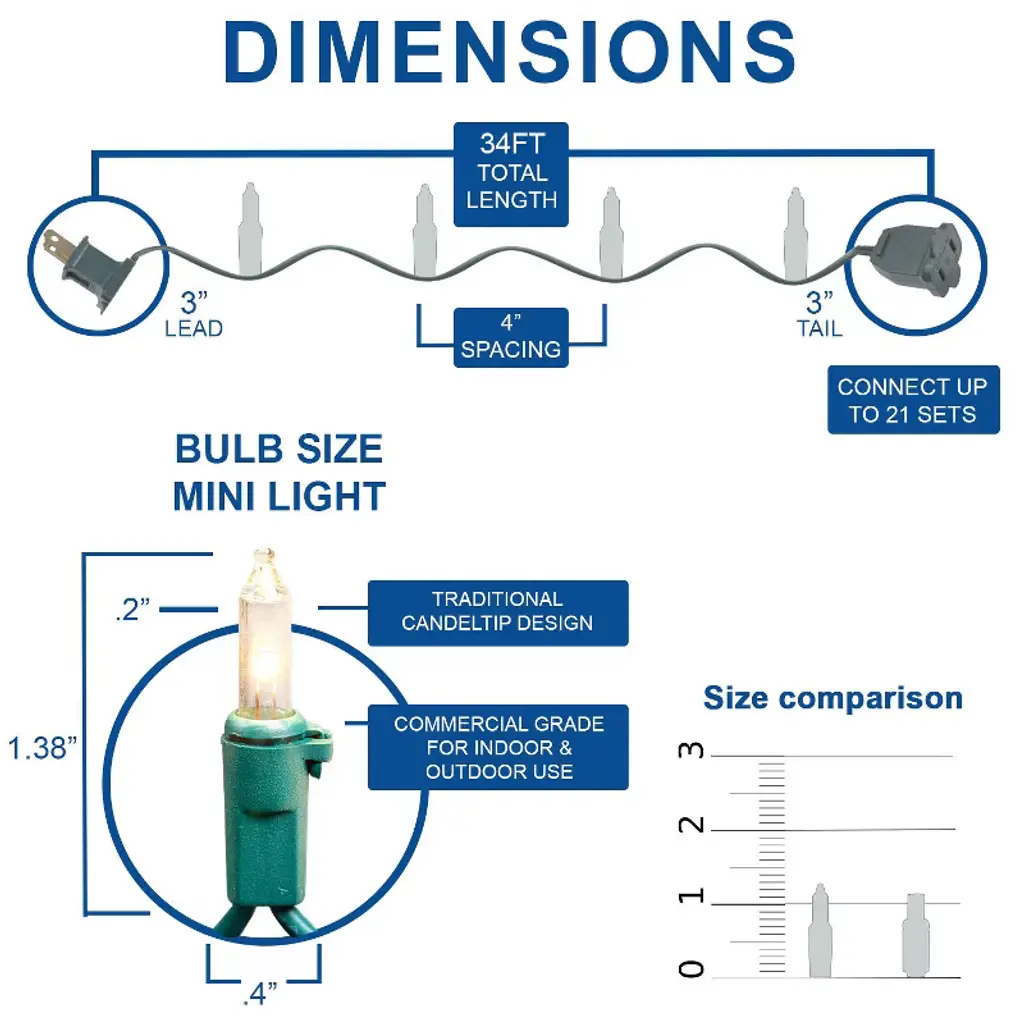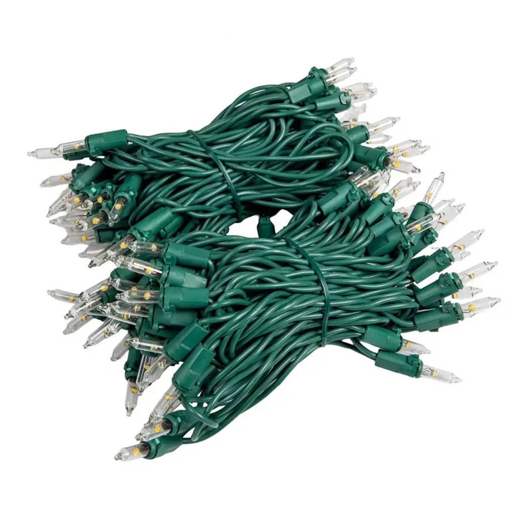 Novelty Lights Retroglo Clear Led Mini Lights 100 Light On Green Wire 34 Feet Long
