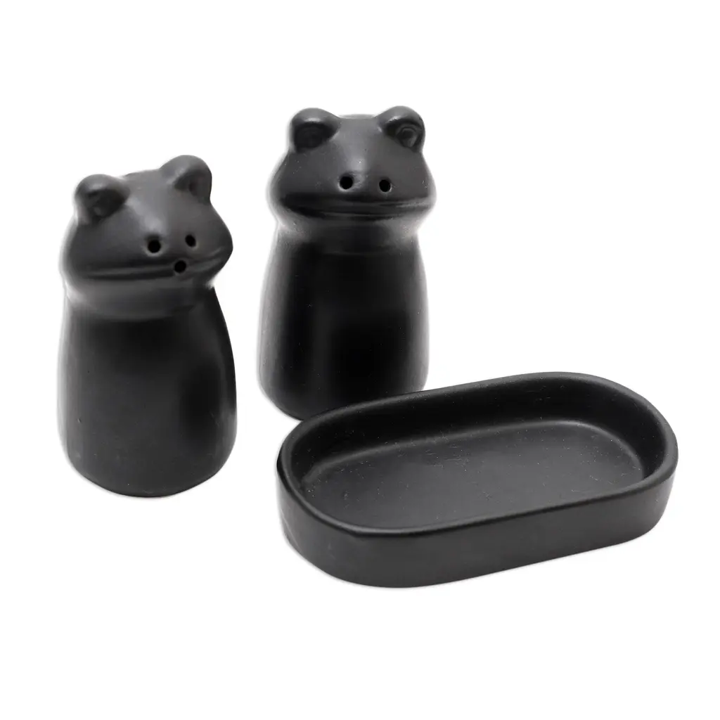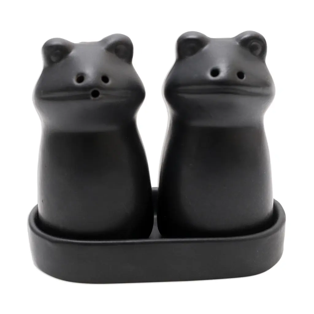 Novica Handmade Fanciful Frogs In Black Ceramic Salt And Pepper Set - Black - 1 Piece