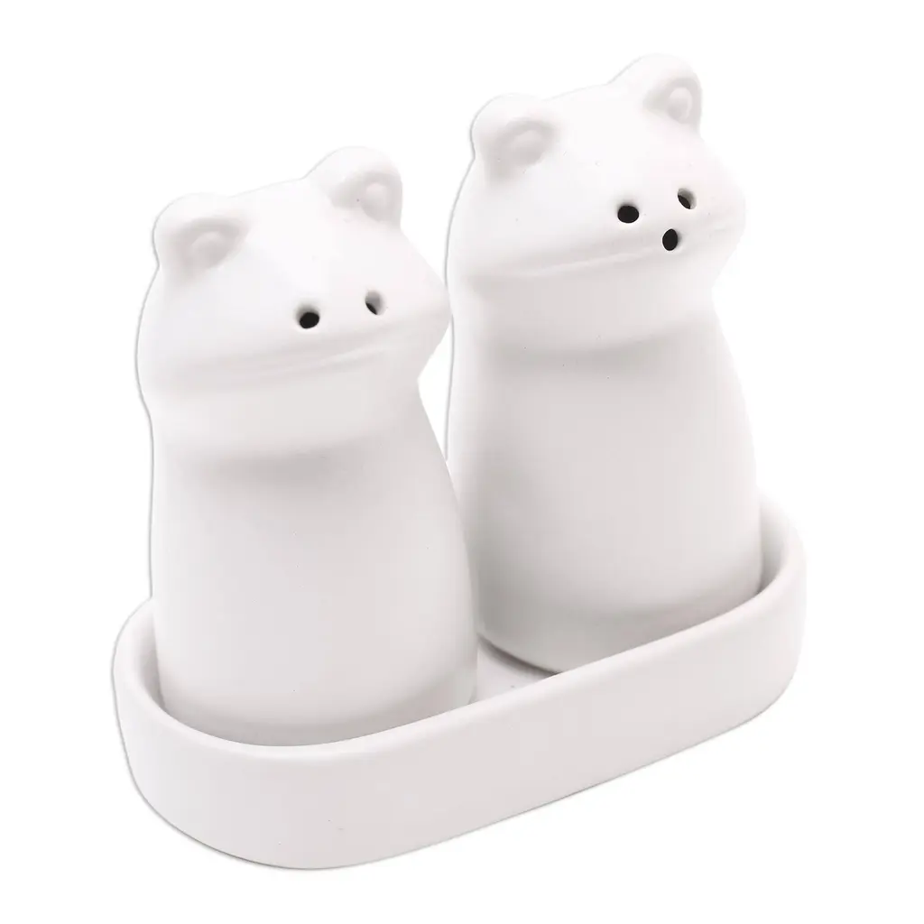 Novica Handmade Fanciful Frogs In White Ceramic Salt And Pepper Set - White - 1 Piece