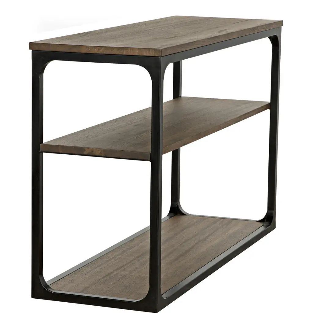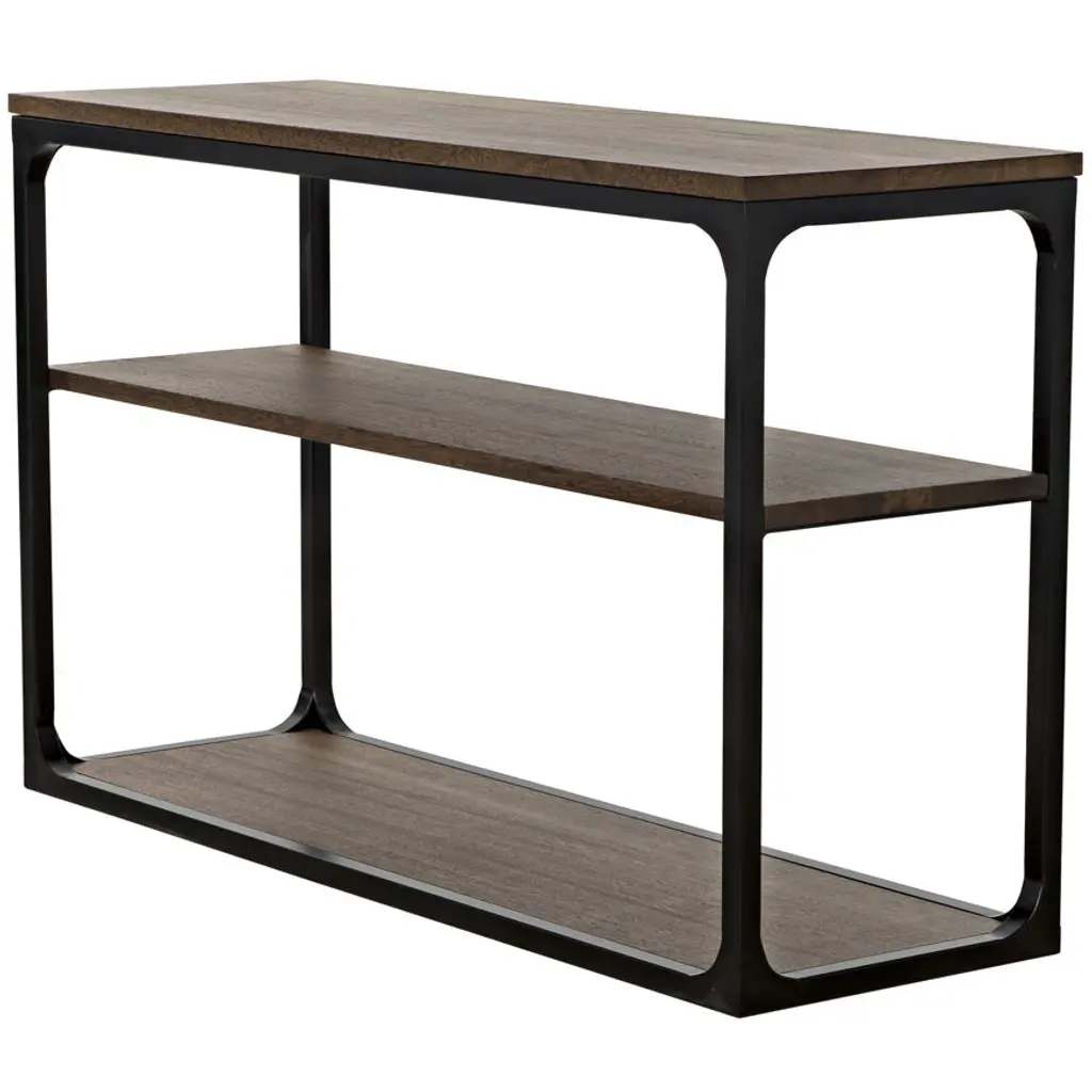 These console tables have each been handcrafted of walnut and are paired with minimally finished metal, creating an unfussy, uncomplicated look perfect for todays modern interiors. Available in a hand applied natural dark finish, each showcases the talent of our master craftsmen.