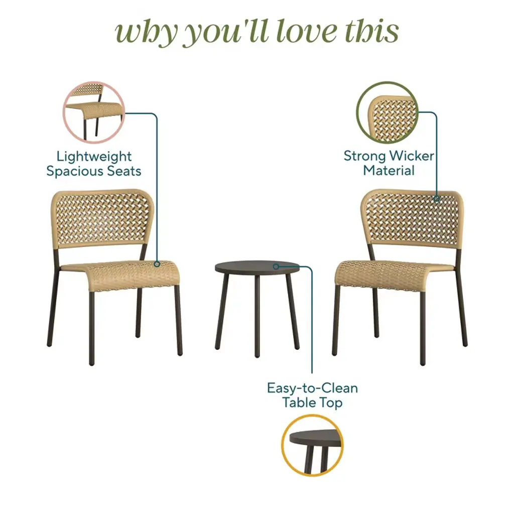 Introducing the Briar 3-Piece Wicker Chat Set by The Novogratz – the ideal blend of modern design and charm! Featuring a stylish wicker weave, this set is not only visually appealing but also built to last. The easy assembly ensures you can set it up in no time, making it ideal for those who value both convenience and aesthetics. Briar is not just a chat set; it is a cozy corner for your morning coffee and heartfelt conversations. The durable construction ensures it can withstand daily use, while the modern design enhances any space. Whether you're catching up with a friend or enjoying a quiet moment alone, the Briar 3-Piece Wicker Chat Set provides the perfect setting.