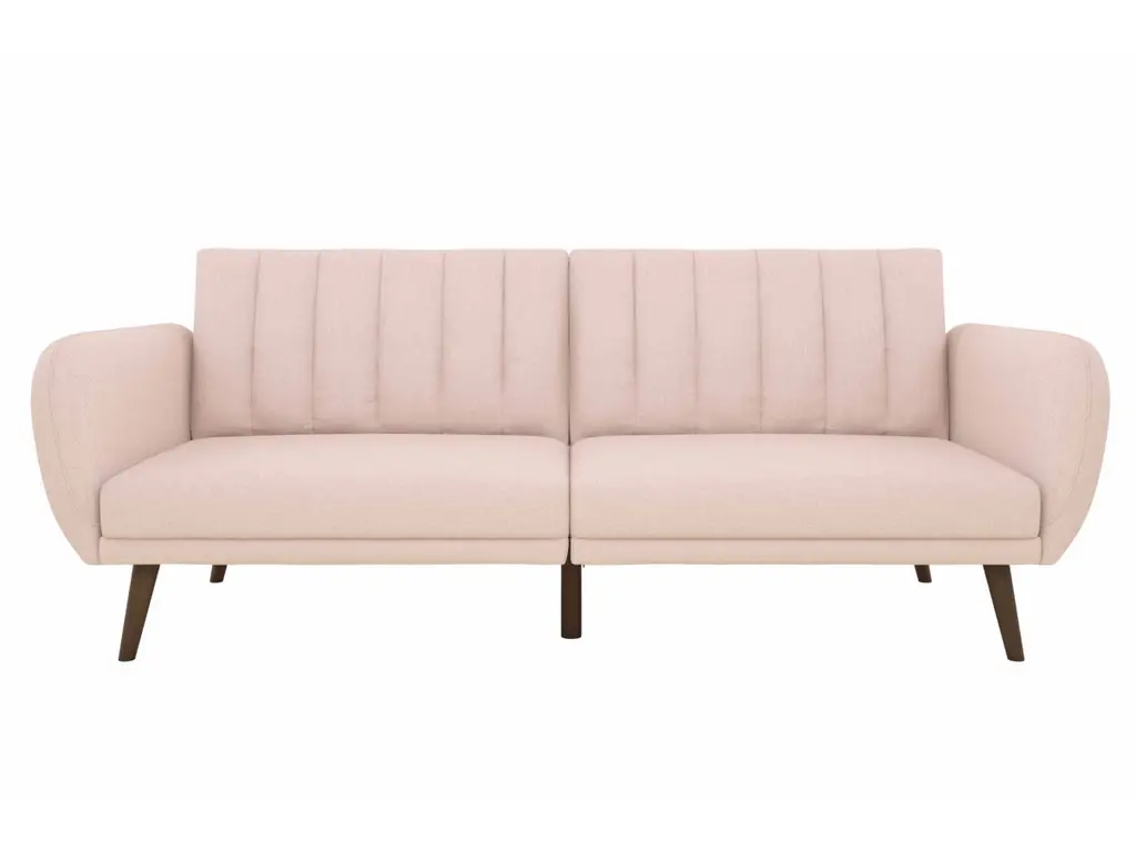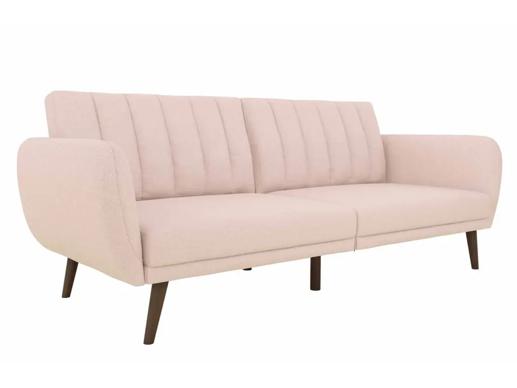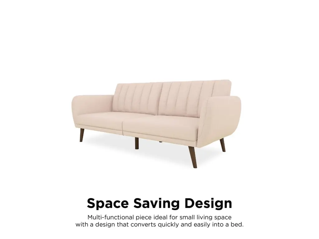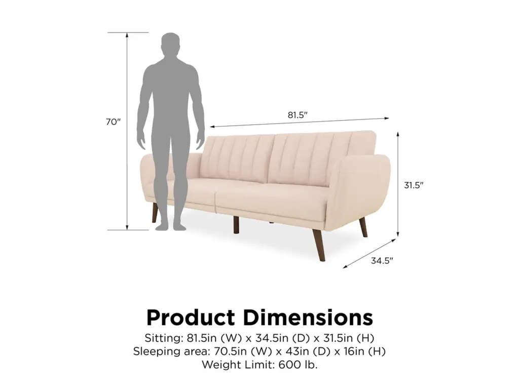 Be embraced by the comfortable cushioning of the Novogratz Brittany linen futon. With its ribbed tufted cushioned back, the Novogratz Brittany Linen futon gives your body all the support you need to sit and relax for hours. The combination of curved armrests and slanted legs work together to provide a unique rounded look that stands out. The linen upholstery adds another element of elegance making this a perfect statement piece for any living space.