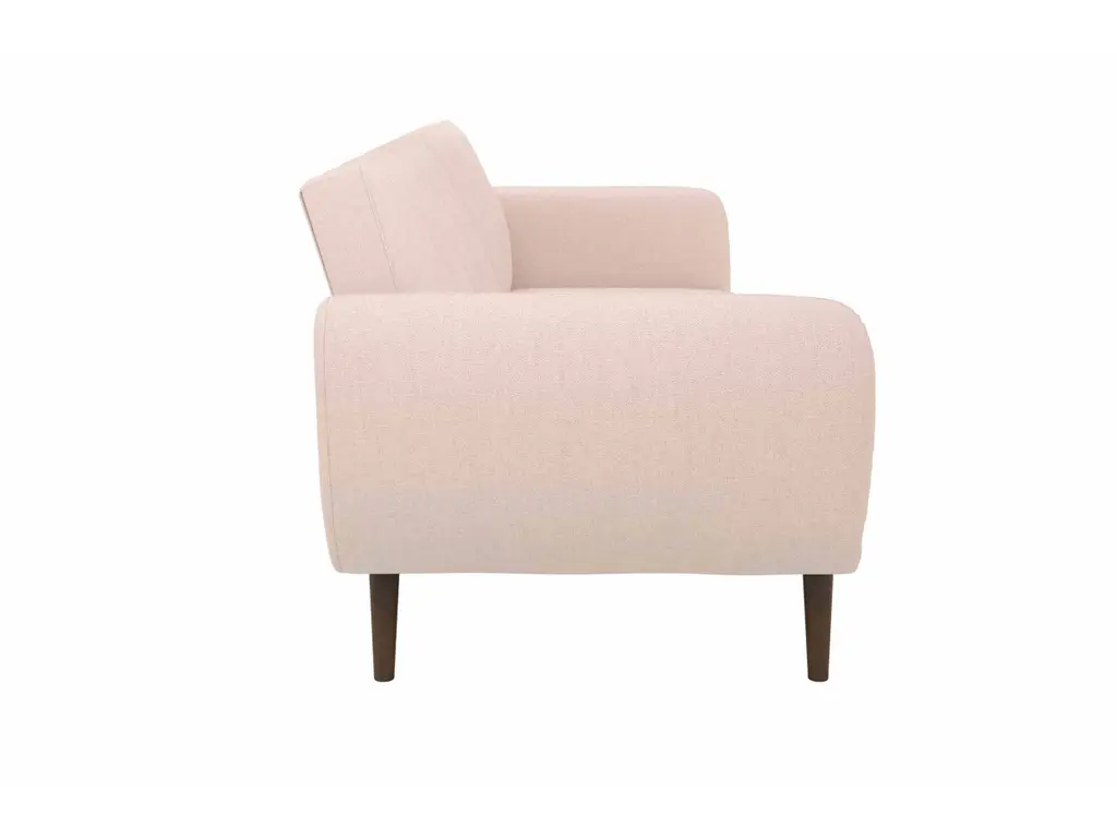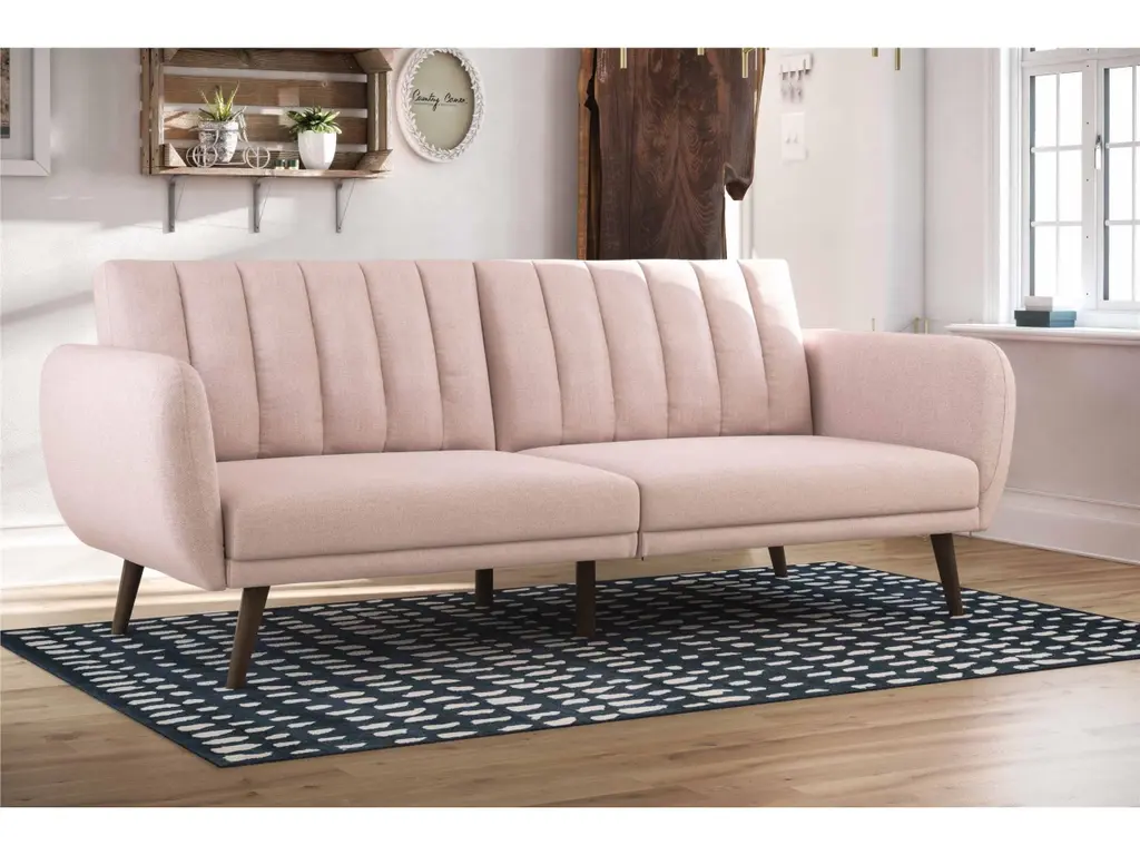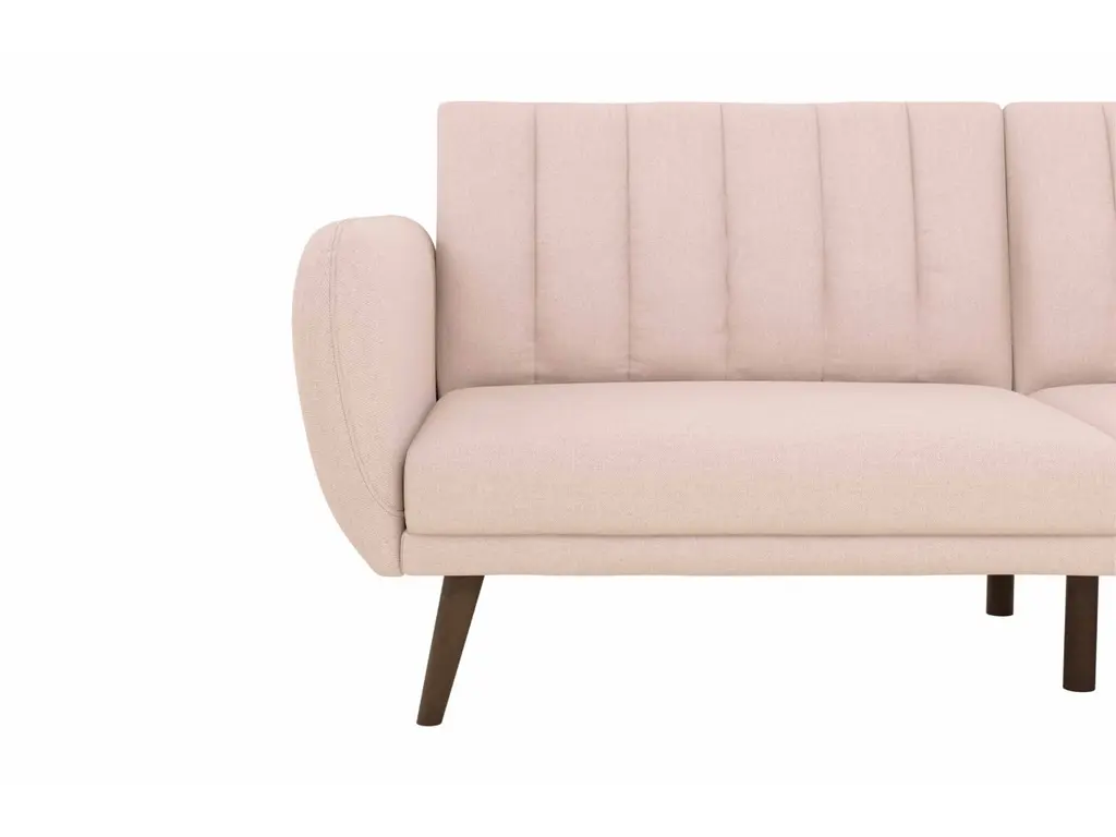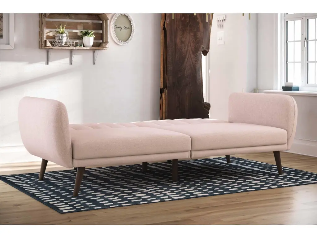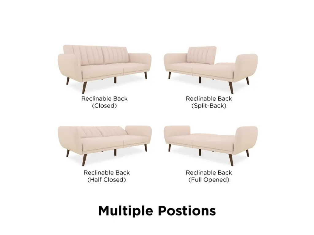 Be embraced by the comfortable cushioning of the Novogratz Brittany linen futon. With its ribbed tufted cushioned back, the Novogratz Brittany Linen futon gives your body all the support you need to sit and relax for hours. The combination of curved armrests and slanted legs work together to provide a unique rounded look that stands out. The linen upholstery adds another element of elegance making this a perfect statement piece for any living space.