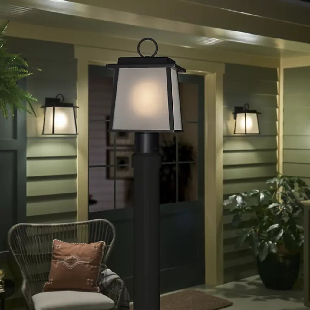The Noward Outdoor Post Light from Kichler balances minimal design with practical outdoor lighting needs. The satin-etched glass panels create soft, even light distribution that enhances nighttime visibility without glare. Its aluminum construction provides long-term stability while maintaining clean geometric lines. The rectangular panels and strong horizontal elements give this fixture a distinct architectural presence. A substantial top ring adds a defining detail while serving as a unifying design element. This post light demonstrates how simplified forms can deliver both effective illumination and refined aesthetics for garden paths and driveways.