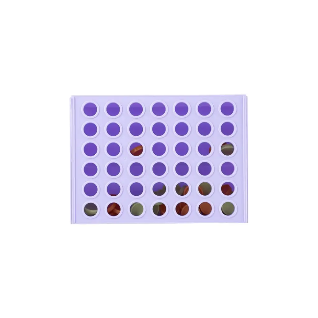 Bring classic strategy fun to any occasion with the Vivitar Four in a Row Mini Game. This portable version of the beloved connect-four challenge is housed in a cheerful purple frame with playful Halloween accents, making it as decorative as it is entertaining. Perfect for two players, it comes with bright game discs and a sturdy board built to withstand countless rounds. Whether at home, at a party, or on the go, this mini game delivers quick, competitive fun for all ages.