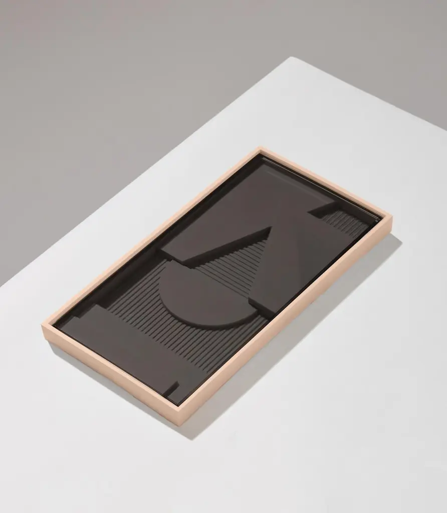 Nude rectangle under the surface by Theodora AlfredsdottirUniqueMaterials: Jesmonite, Glass topDimensions: 140 x 260 x 30mmTheodora Alfredsdottir is a product design studio based in London. Theodora is an Icelandic product designer. She holds a bachelor’s degree in product design from the Iceland Academy of the Arts (2012) and a master’s degree in Design Products from the Royal College of Art in London (2015).Storytelling through objects; Theodora’s work revolves around the narrative an object can inhabit and exploring ways of objectifying that narrative. She's interested in the way an object can act as documentation of its manufacturing process; a record of what went on between the machine, tools, craftsman and Material as well as it can communicate its origin and former life. In short, the object creates its own factual narrative. That often leads to the discovery of unexpected qualities as well as it gives the user a subtle opportunity to reconsider our Material world and explore value in a different way.