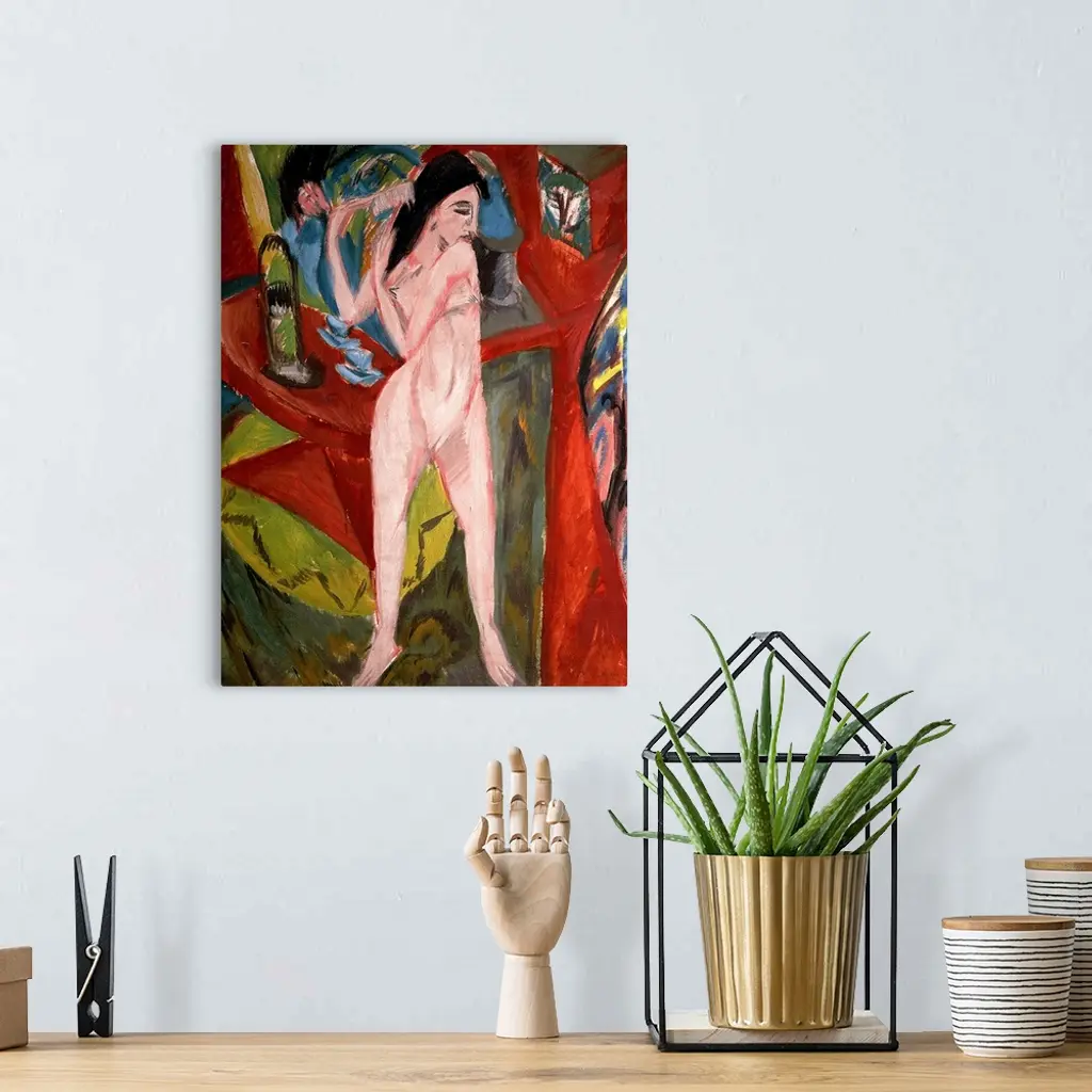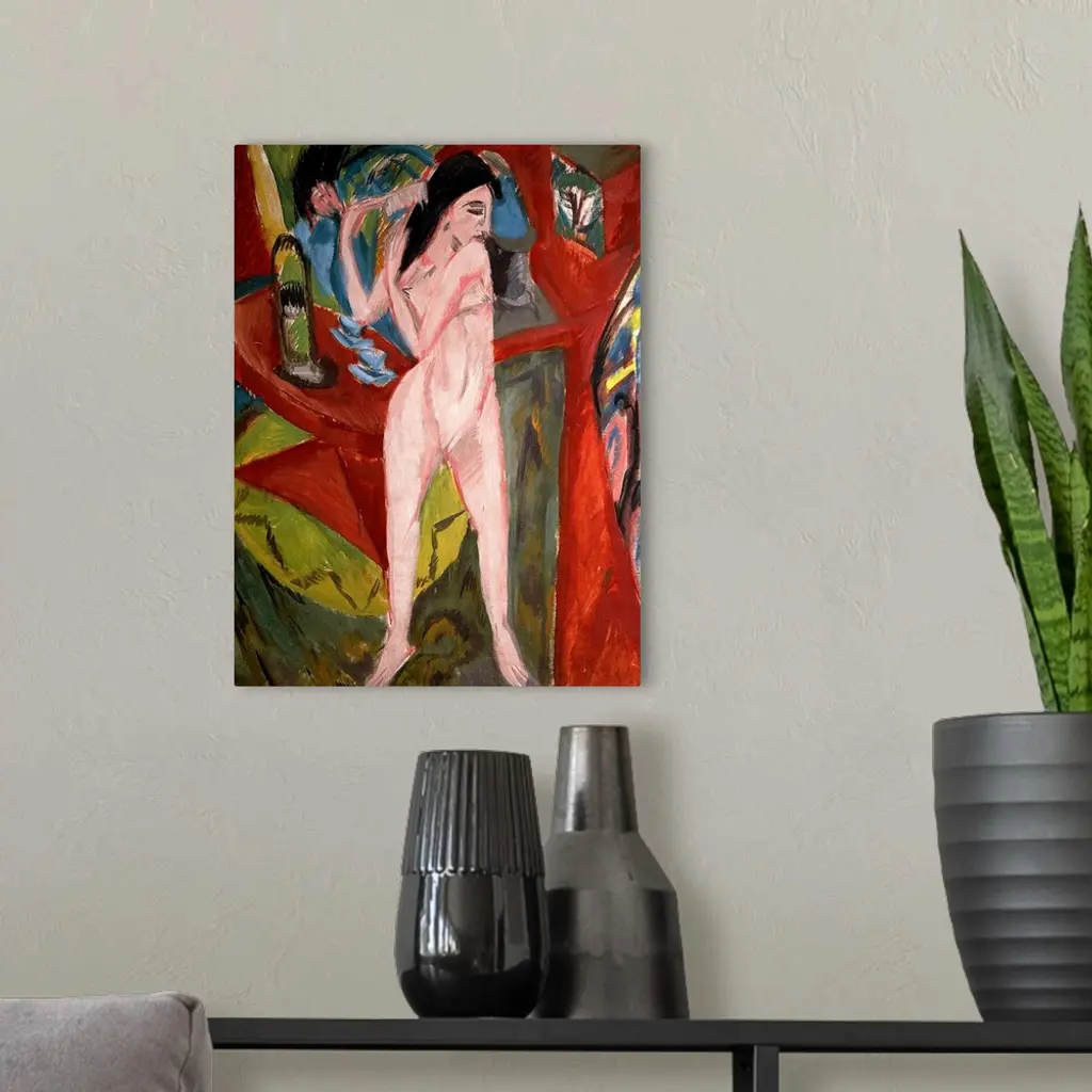 BAL41072 Nude Woman Combing Her Hair, 1913 (oil on canvas) by Kirchner, Ernst Ludwig (1880-1938); 125x90 cm; Brucke Museum, Berlin, Germany; German, out of copyright