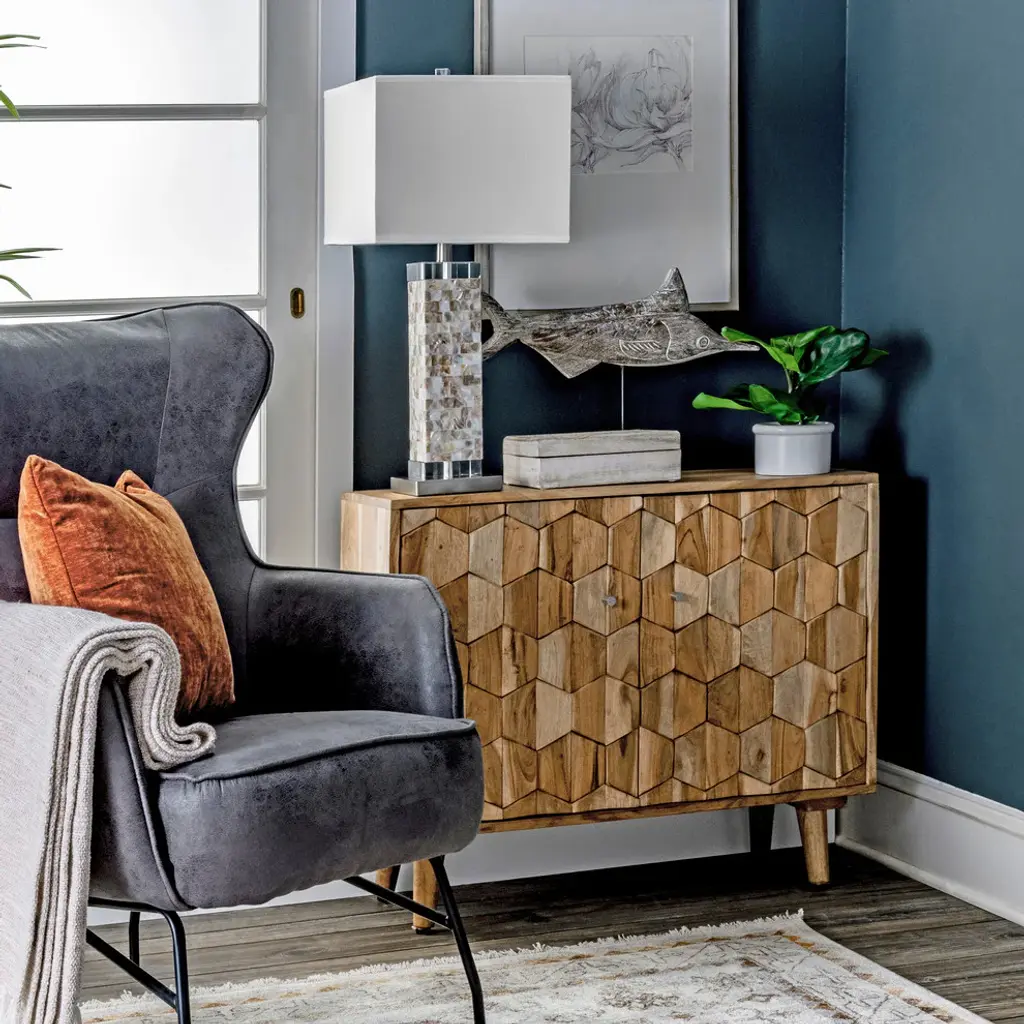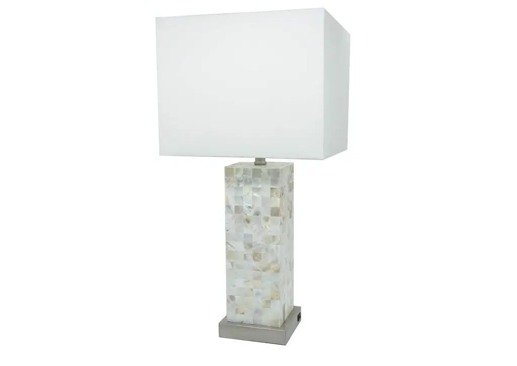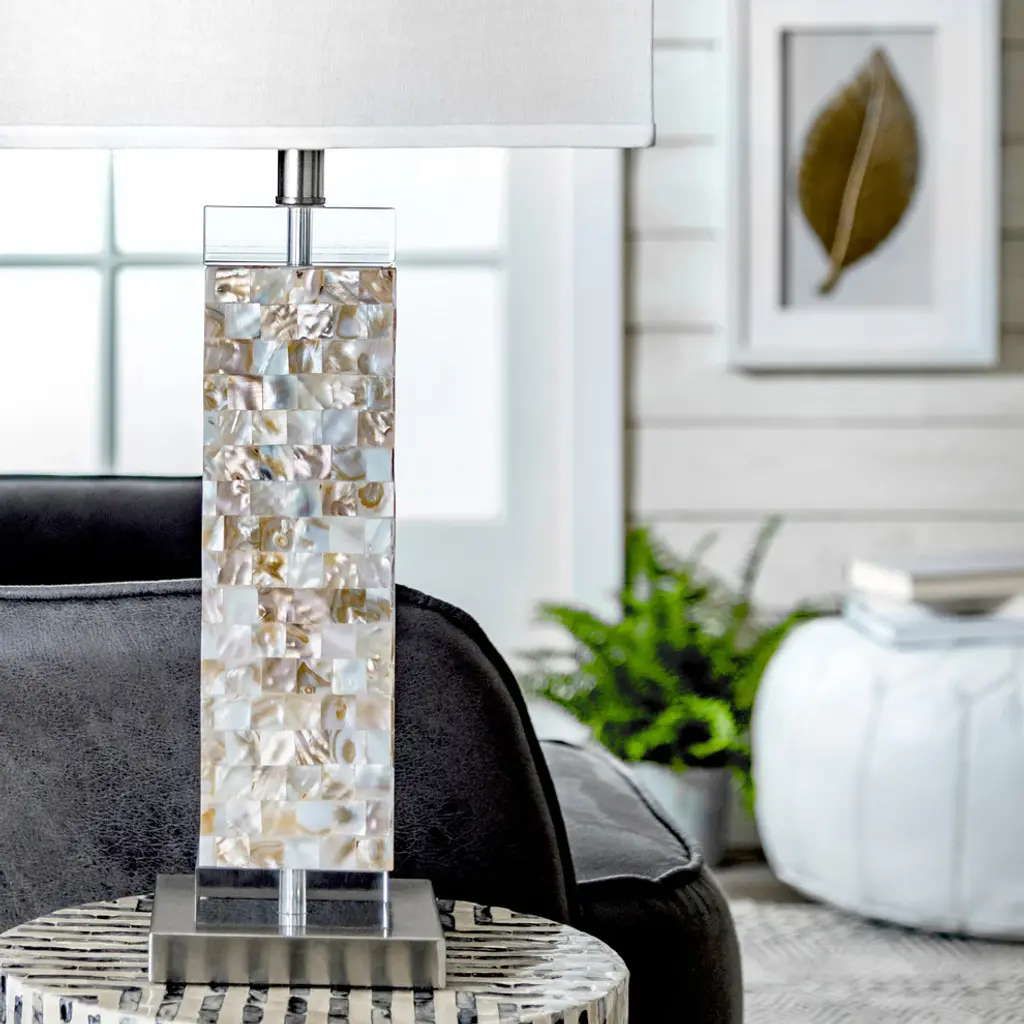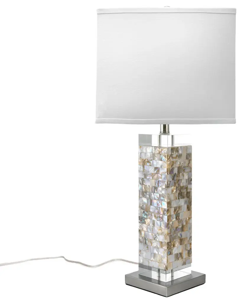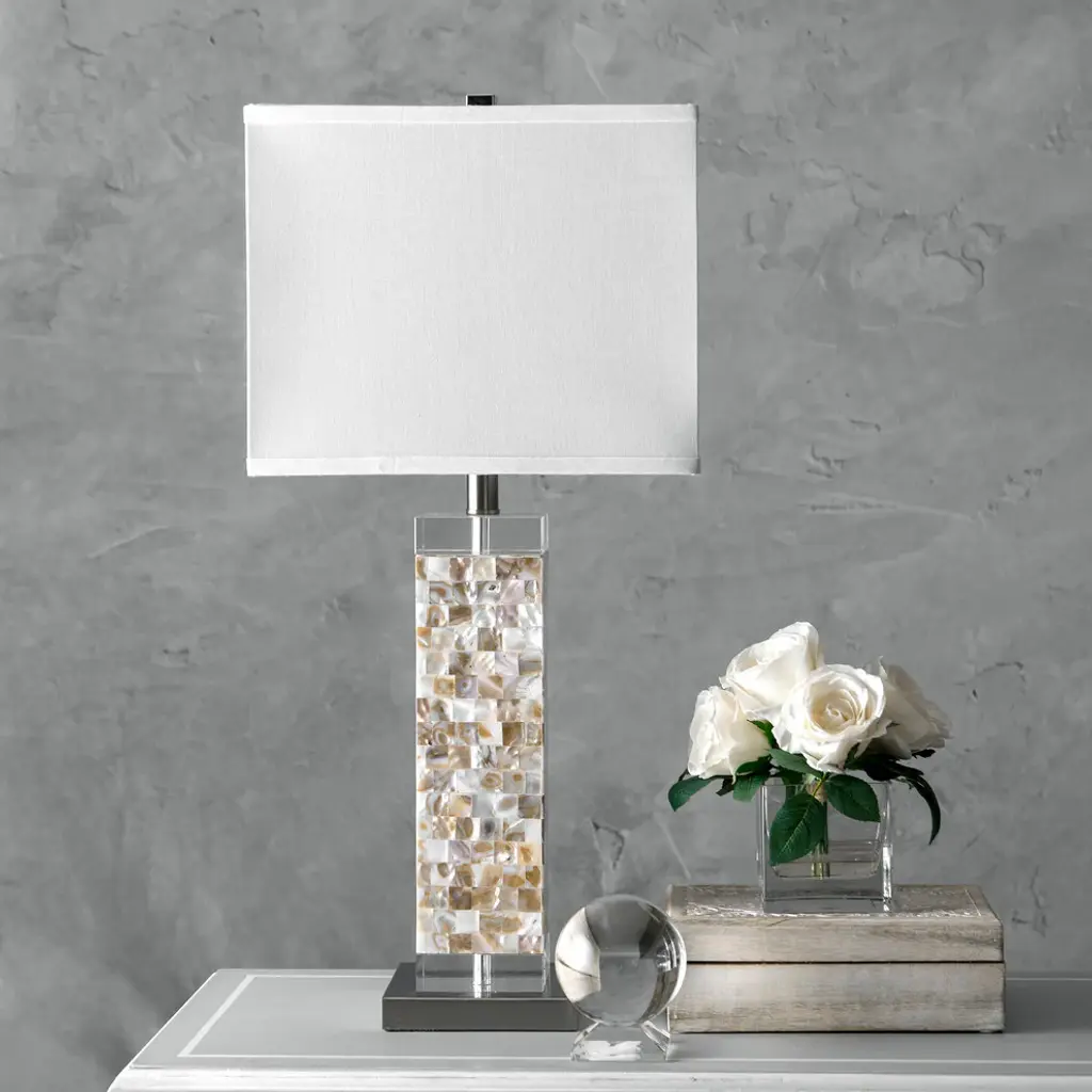 Nuloom 29" Mosaic Prism Linen Shade Satin Nickel & White, 3-Way Switch