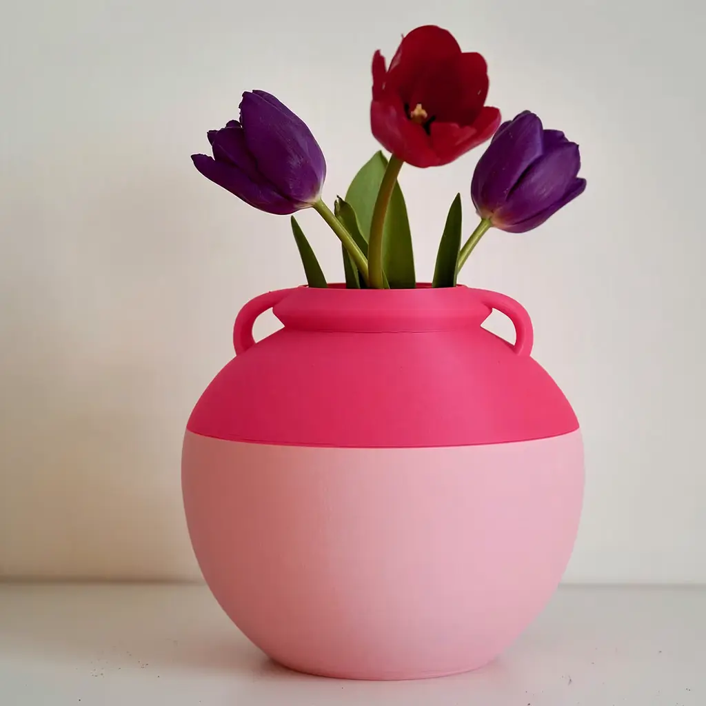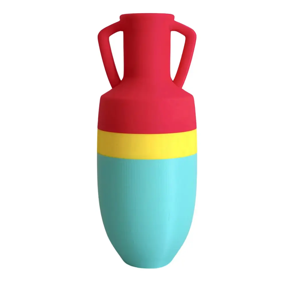 This vase is a pop reinterpretation of the archetypal shape of Roman amphorae. The main inspiration for this object has been Montestaccio's archeological site studied by Heinrich Dressel. The vase is produced with the use of 3D printing and the best quality of PLA (thermoplastic derived from renewable resources, compostable in industrial facilities). The sustainable and elegant vase is the perfect design for a chic enviroment.
