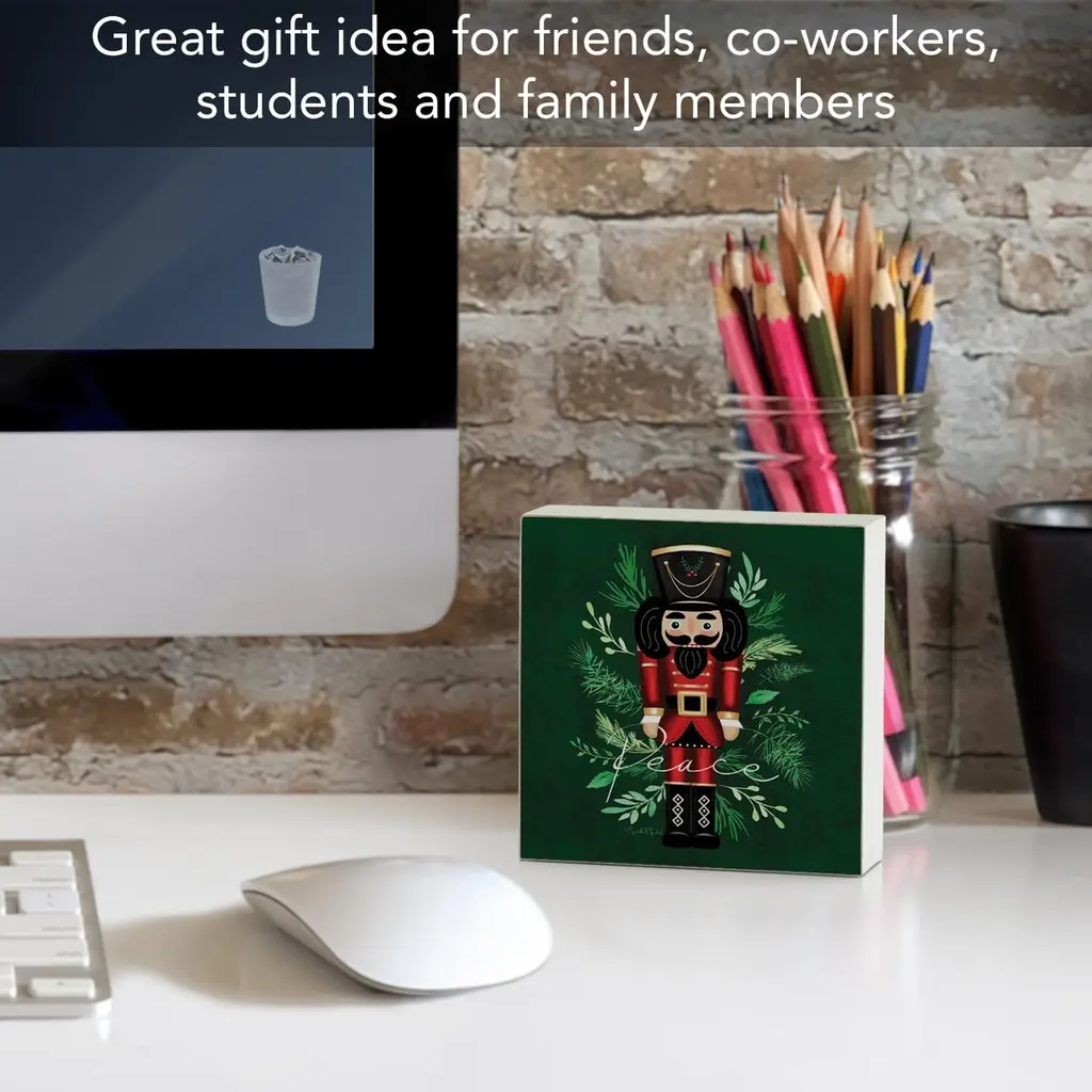 Nutcracker Artistic Freestanding Solid Wood Block Sign Made In The Usa 3.75” Square Decorative Accent For Home Or Office - Multi - Multi
