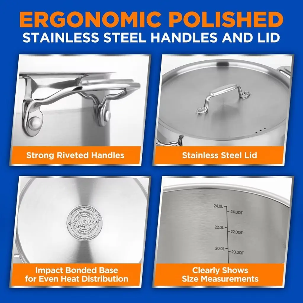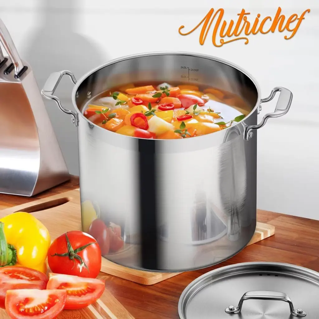 Nutrichef Stainless Steel Cookware Stock Pot - 24 Quart, Heavy Duty Induction Pot, Soup Pot With Stainless Steel