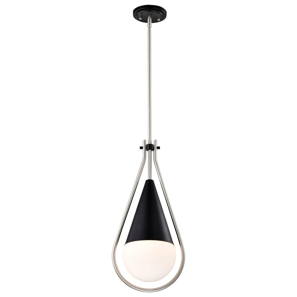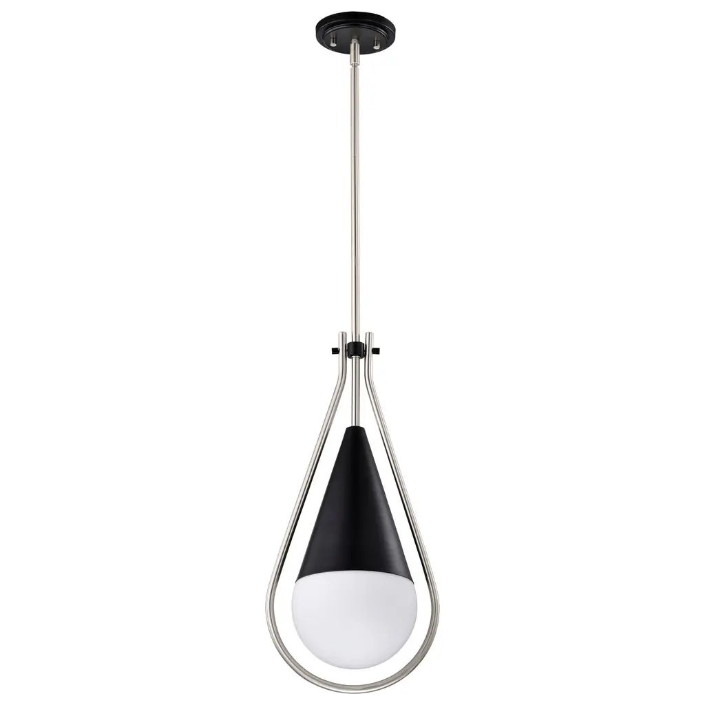 A modern collection with a twist, the Admiral 60-7913 medium pendant features a dual finish, unique design, and a fashionable statement for home luminaires. A suspended tear-dropped shape is comprised of elements encompassing the fixture. The glass orb shields the-light source for smooth, even-lighting to bring a warm glow to any space. A beautiful design that is versatile and will compliment a variety of home decors.Features:Dimensions:Electrical Specifications: