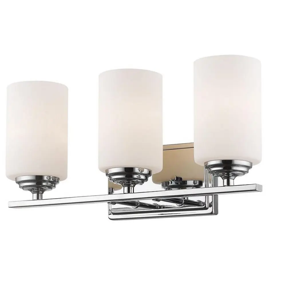 Collection: Denver, Finish Color: Polished Nickel, Width: 21.25", Height: 10.13", Depth: 6", Number Of Bulbs: 3, Wattage: 100 Watts, Dimmable: No, Moisture Rating: Damp Rated, Desc: Shade Included: TRUE / Warranty: 1 Year Limited. ,