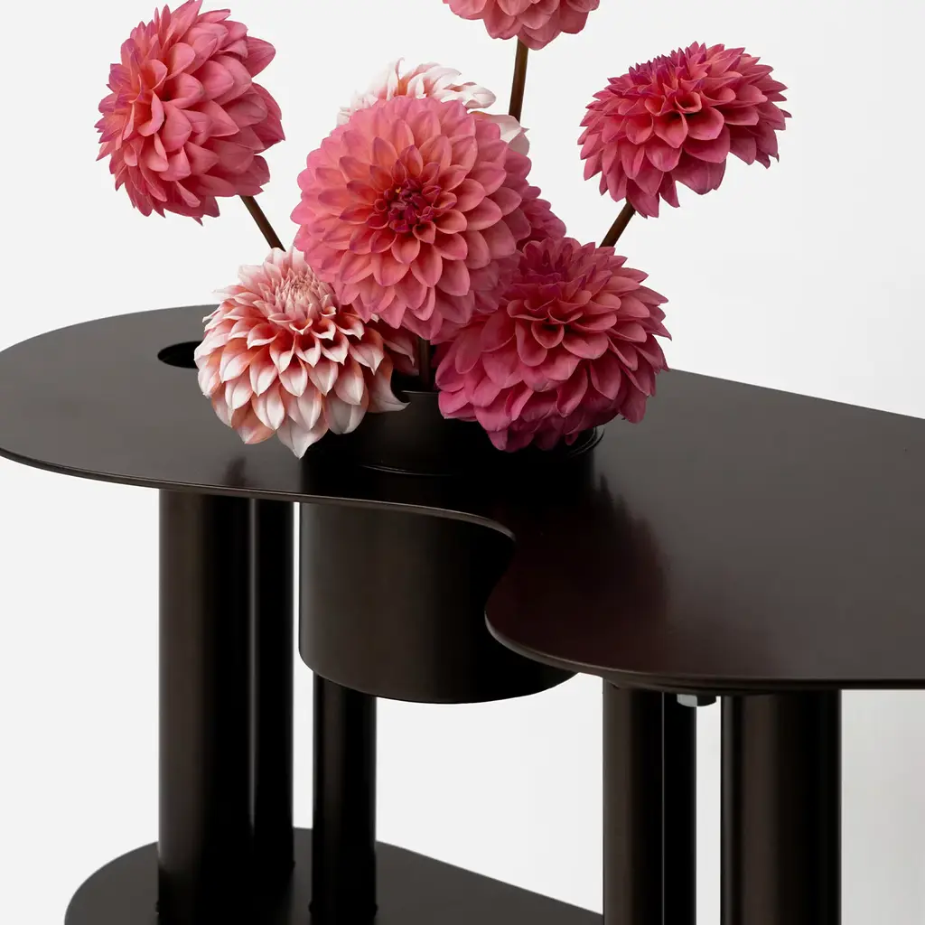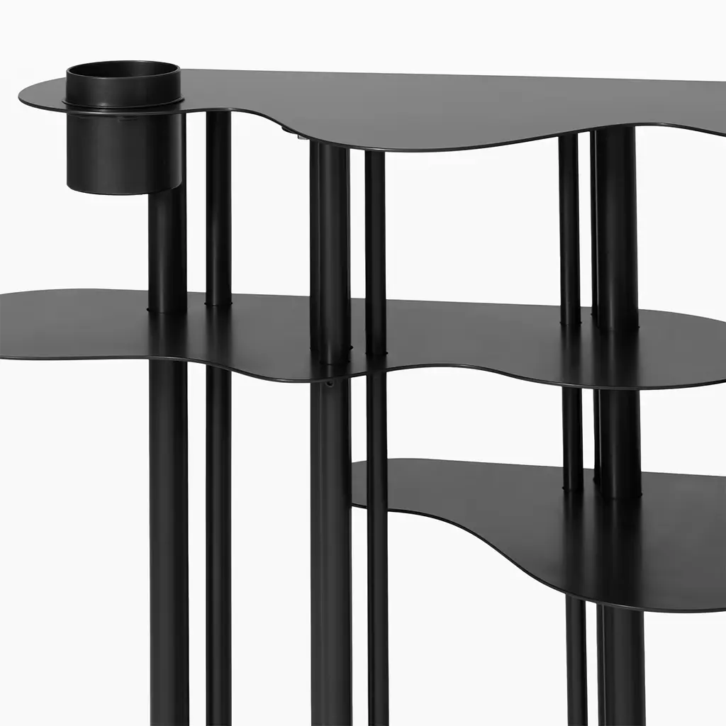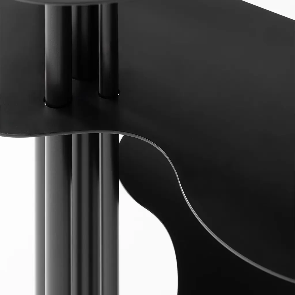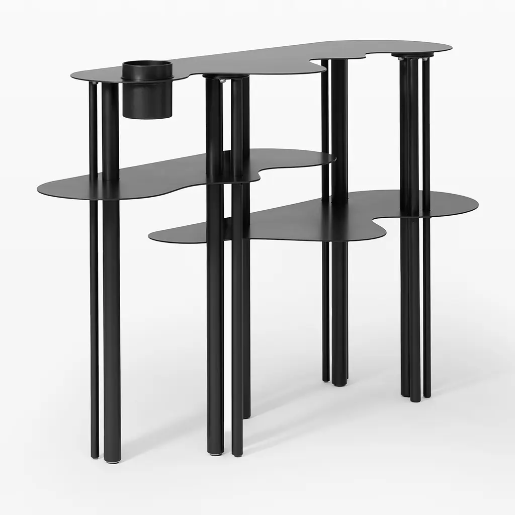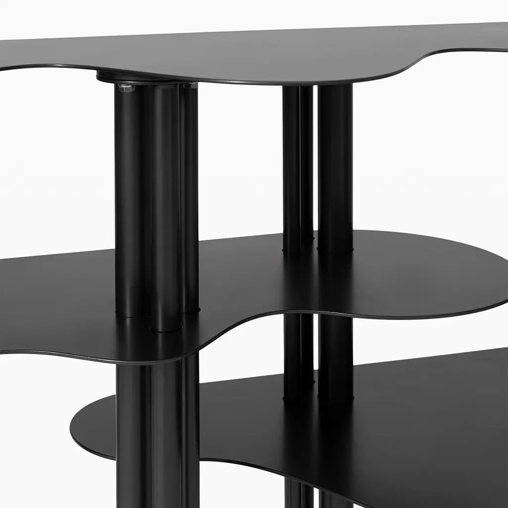 The console emerges as a scenographic element that defines the space, imparting a refined charm. Nuvola 02, designed by Mario Cucinella, evokes modernist architecture with overlapping, staggered planes. The object embodies lightness and elegance through the fluidity of its diverse planes. Entirely crafted in painted steel, it features a top and shelves made of a delicate 3 mm thick surface, while shelves at different heights make the product functional and adaptable in various environments.