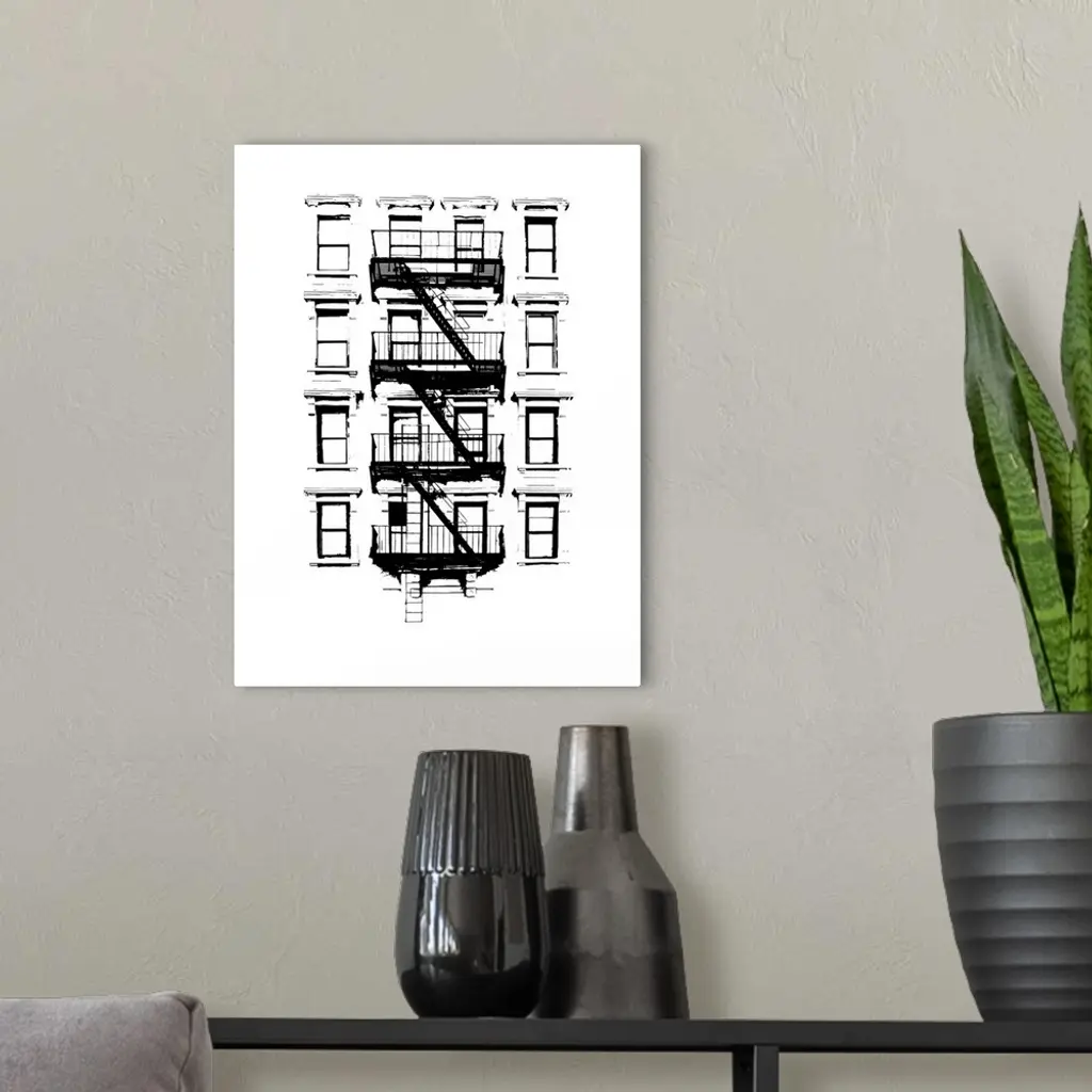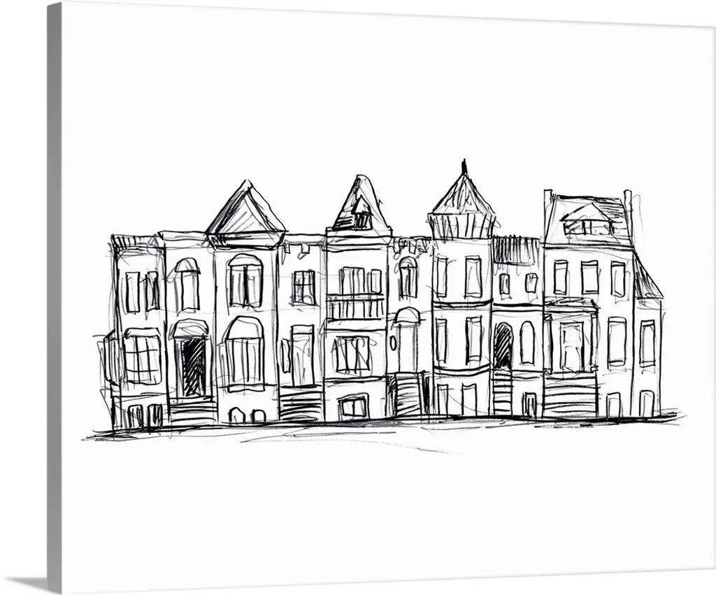 Bold lines and geometric shapes reveal the details of everyday buildings in this cityscape.