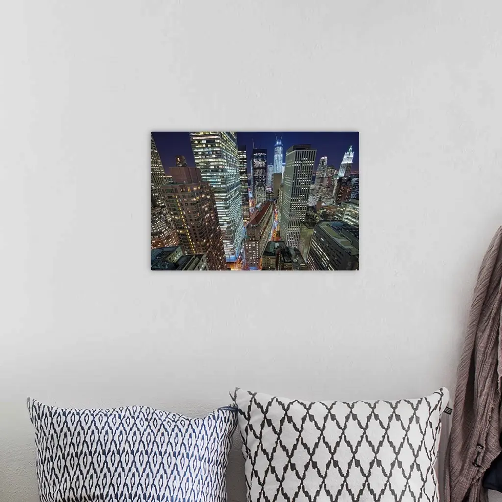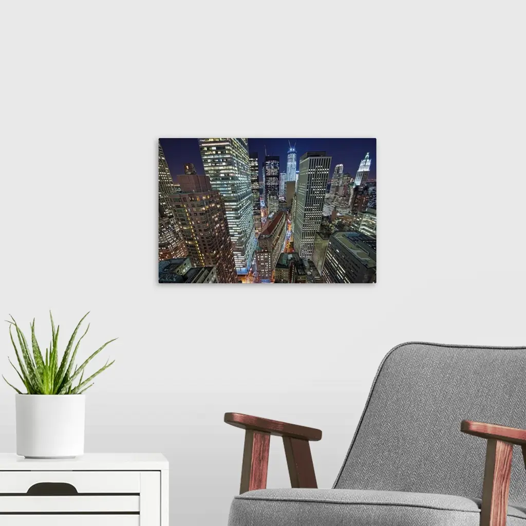 Nyc Skyscrapers Light Up By Night, New York.