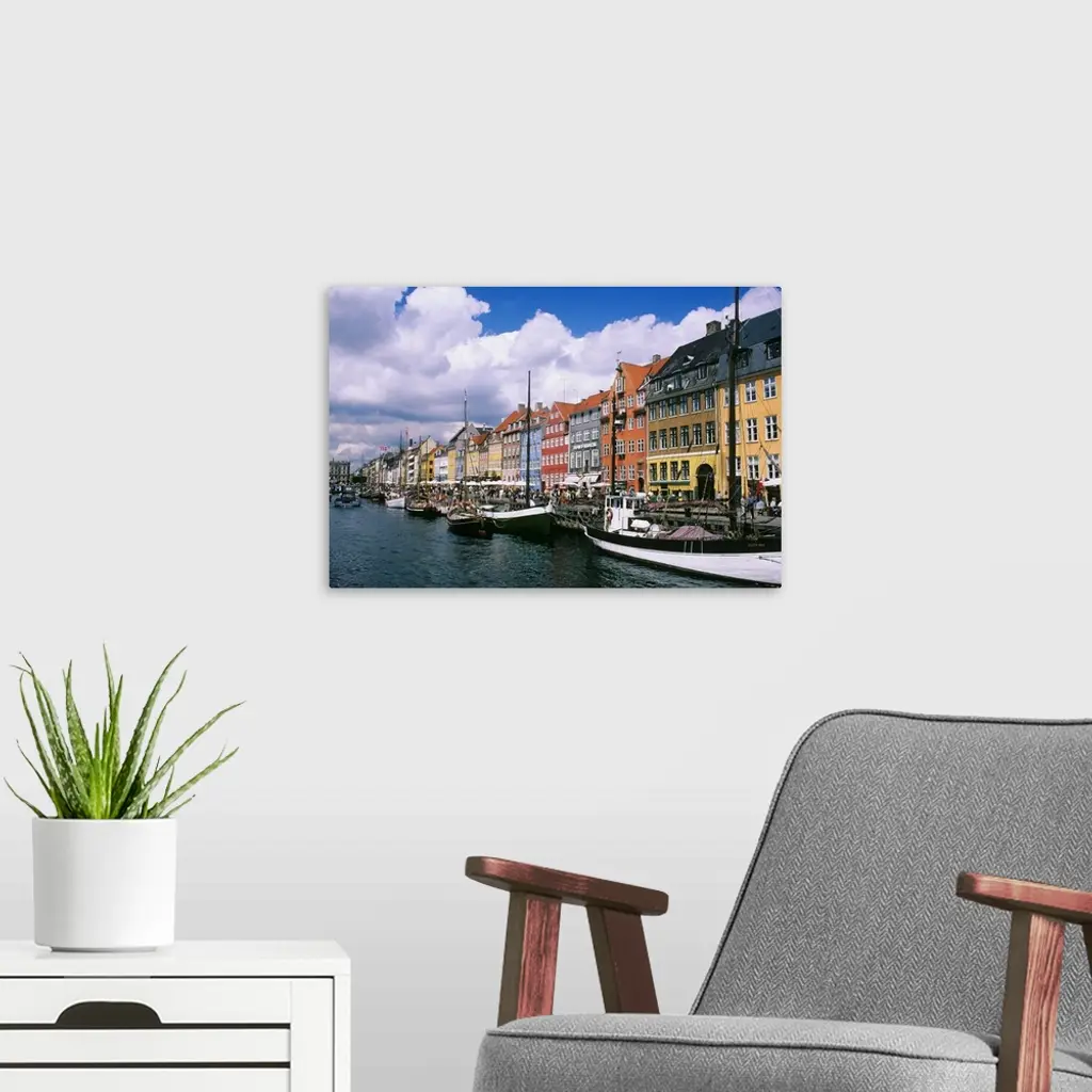 Nyhavn Canal With Nautical Vessels In Copenhagen, Denmark