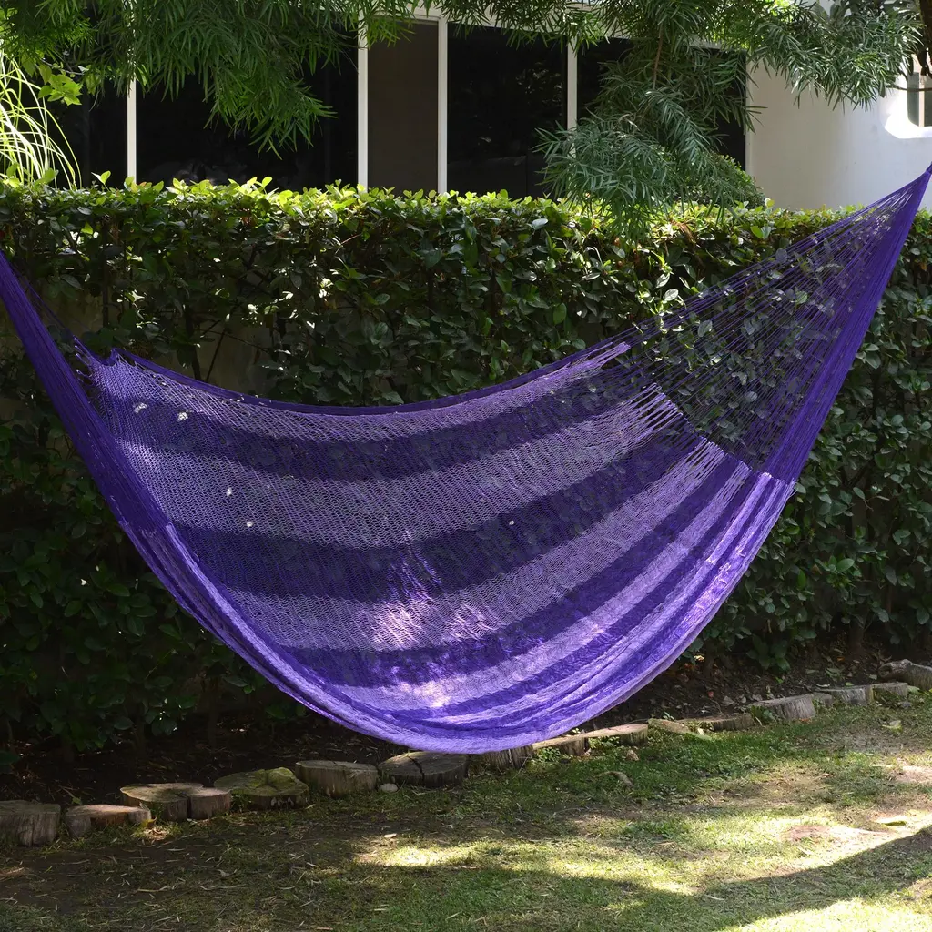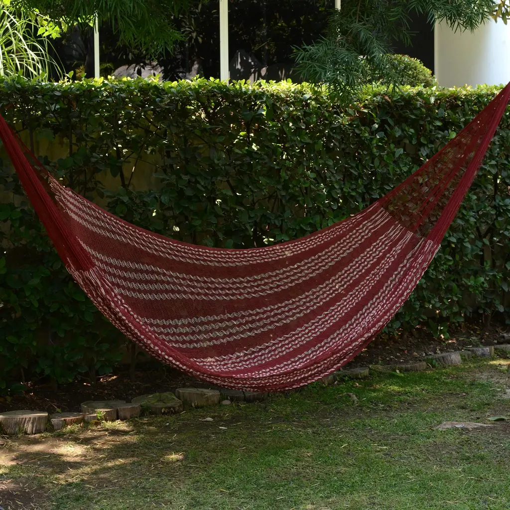 An intricate design from interwoven daffodil and tangerine threads cover the length of this single rope hammock, handwoven by Maya Artists of the Yucatan, who work together to preserve the time-honored weaving traditions of Mexico. Lightweight and comfortable, this gorgeous hammock hangs from steel S-hooks.Please note: The accompanying extension ropes may vary in color from those shown in the images.