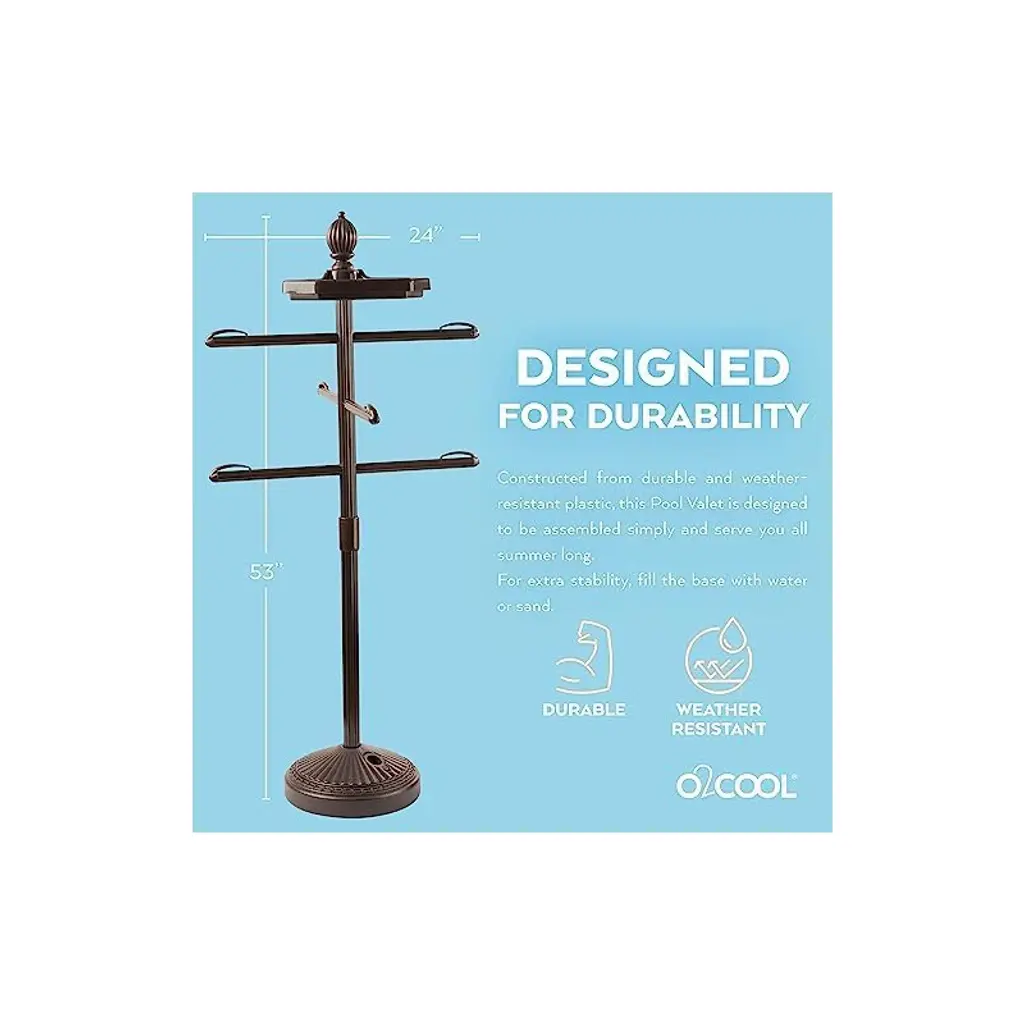 O2cool Pool & Spa Valet, Adjustable Outdoor Pool & Patio Towel Holder - Bronze