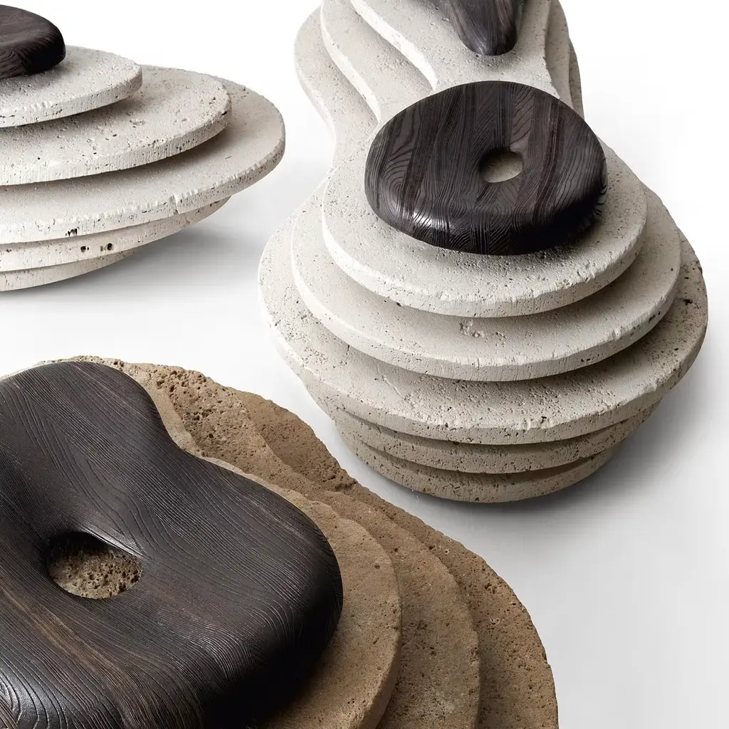 Oasi N.1 Seating In Travertino Paglierino And Aged Larch