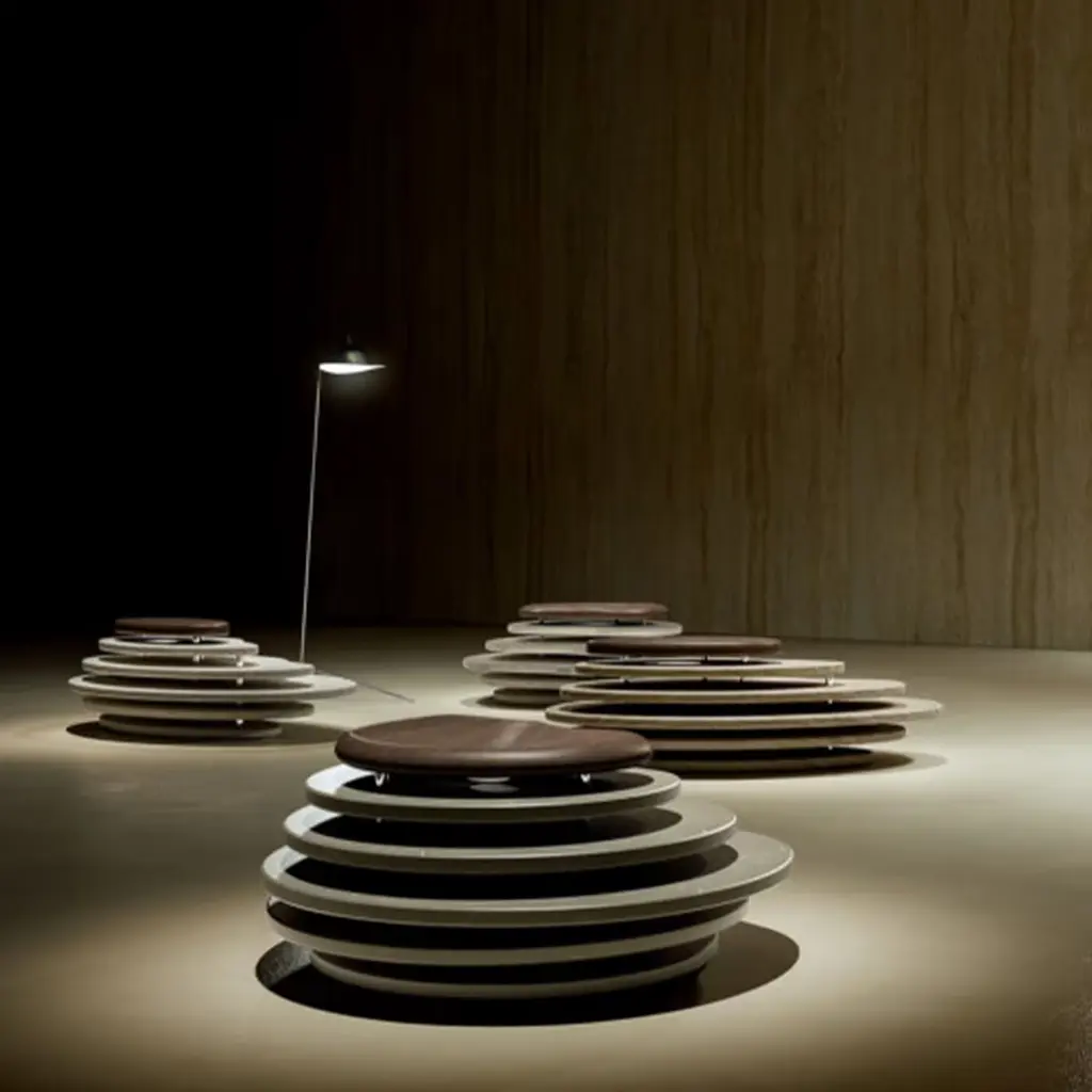 An extraordinary exercise of form and balance, Oasi is the result of the horizontal layering of natural marble stone and aged larch wood, gently smoothed into curved shapes, and fixed together with vertical metal tubes. Comfortable and sturdy, it is suitable for outdoor use, ideally combined with other pieces from this series of seats. Available in straw-colored or walnut Travertino, as well as white Carrara, and in three different formats. Please consult the Concierge for details.