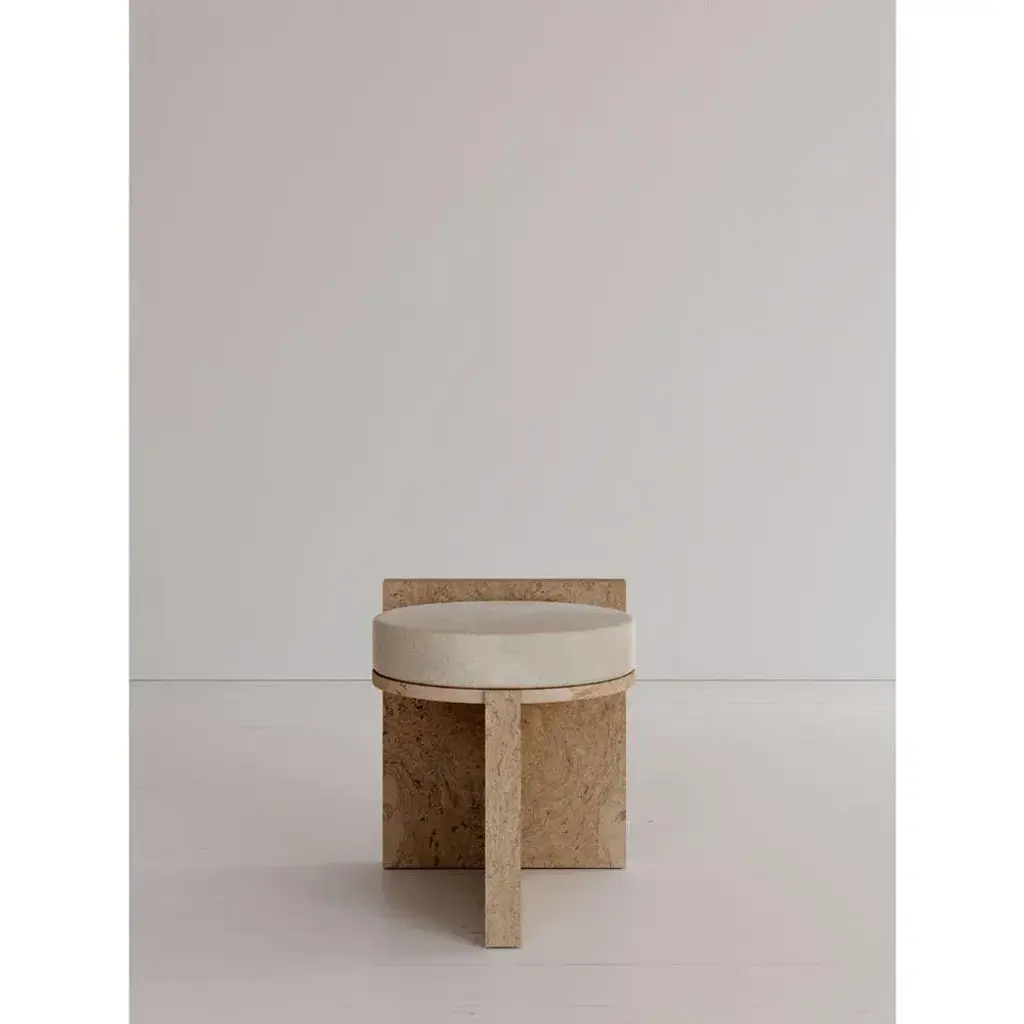 Object 01 beige seating by volta dimensions: d 45 x w 40 x h 50 cm materials: cork and velvet also available in diffentent colours. Please contact us. Meï collection the meï collection was born from the desire to highlight the cork material. A material known for its common and popular use, cork deserves special attention in terms of its aesthetic, constructive and ecological properties. Starting from cork, the volta agency has developed with the trizzano workshops several methods of compression to recycl this material. The patterns that were created then revealed all the subtlety of this material. To sublimate it even more, several colorimetric shades have been developed. The cork is thus bathed and colored, giving it a whole new image. The agency volta practices in the fields of architecture and interior design.