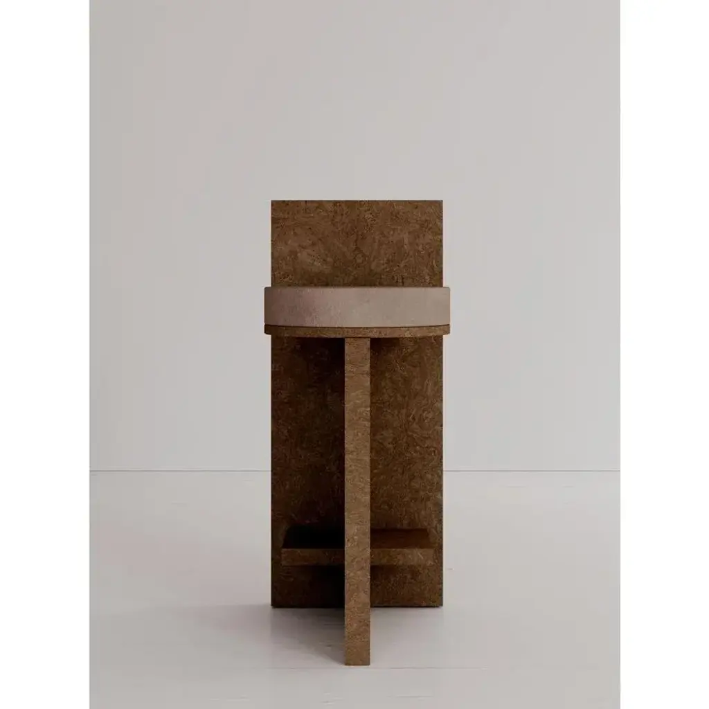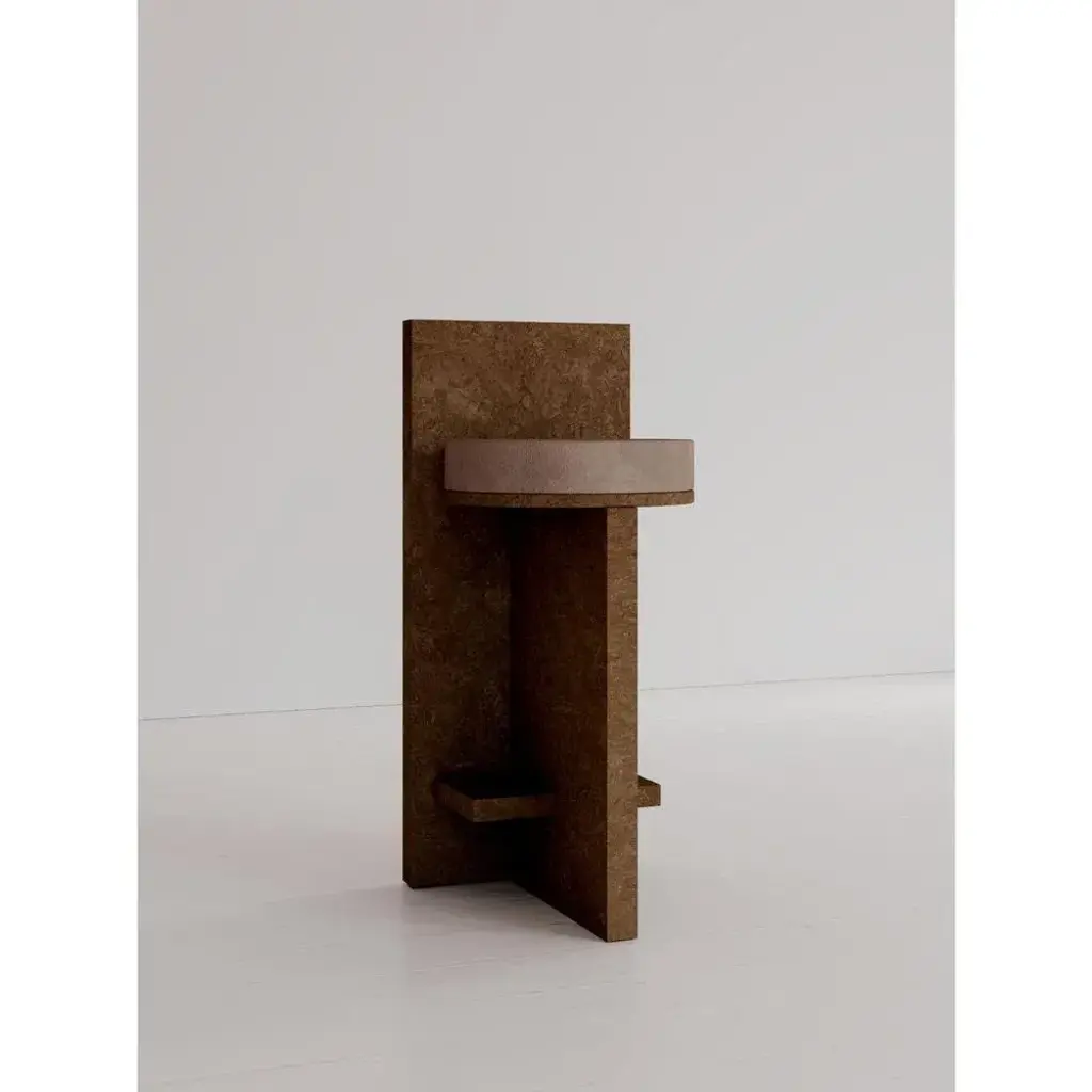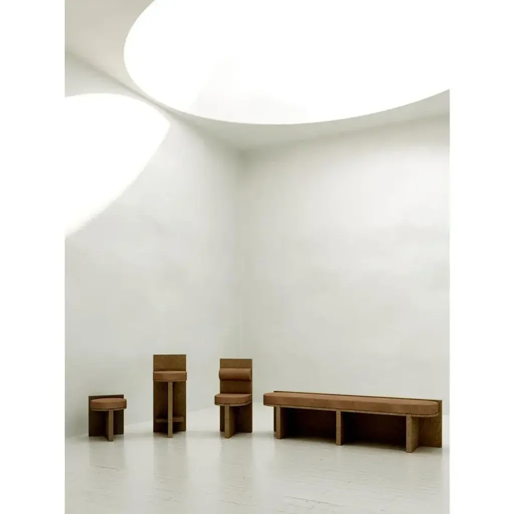 Object 02 marron seating by volta dimensions: d 45 x w 40 x h 95 cm materials: cork and velvet also available in diffentent colours. Meï collection the meï collection was born from the desire to highlight the cork material. A material known for its common and popular use, cork deserves special attention in terms of its aesthetic, constructive and ecological properties. Starting from cork, the volta agency has developed with the trizzano workshops several methods of compression to recycl this material. The patterns that were created then revealed all the subtlety of this material. To sublimate it even more, several colorimetric shades have been developed. The cork is thus bathed and colored, giving it a whole new image. The agency volta practices in the fields of architecture and interior design.