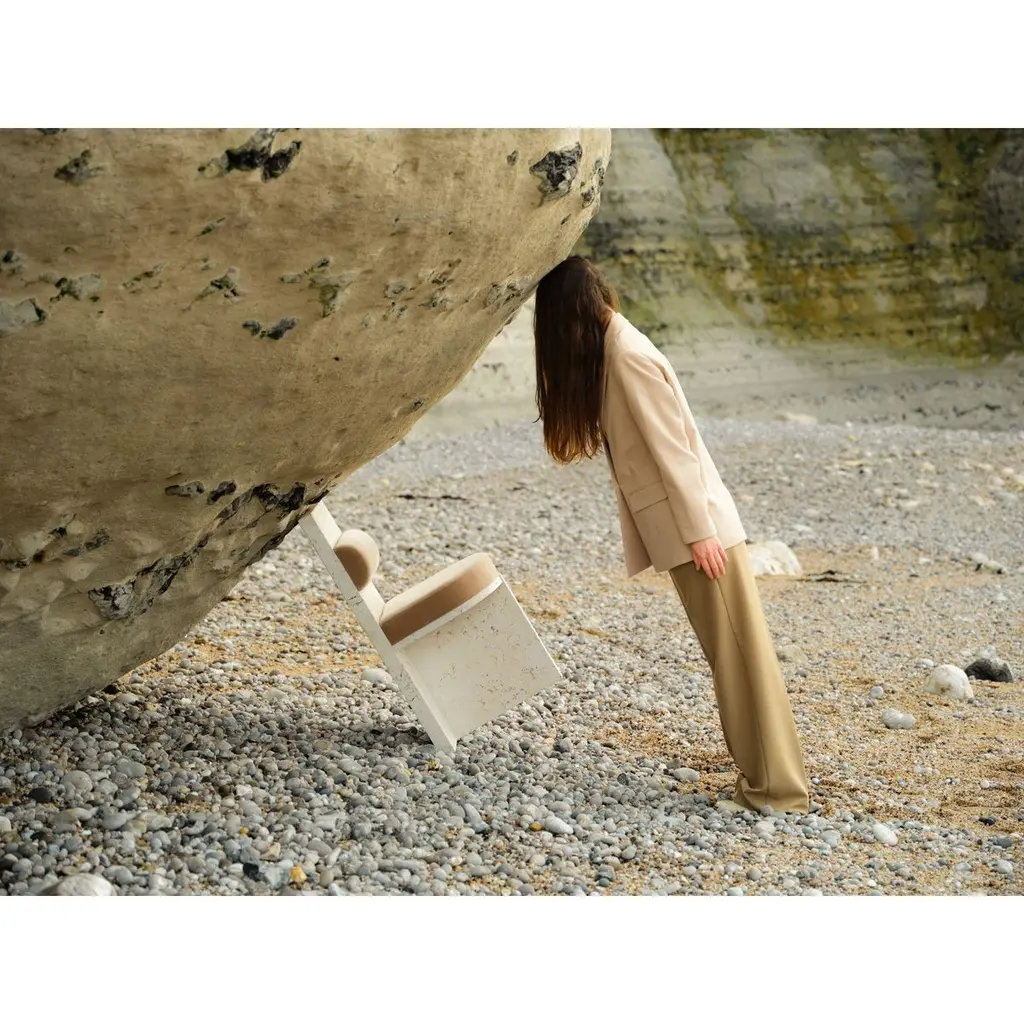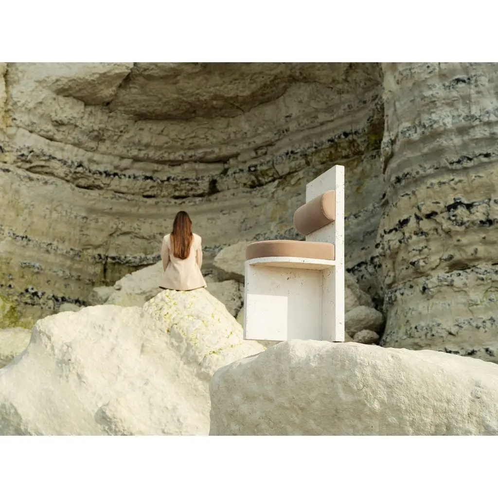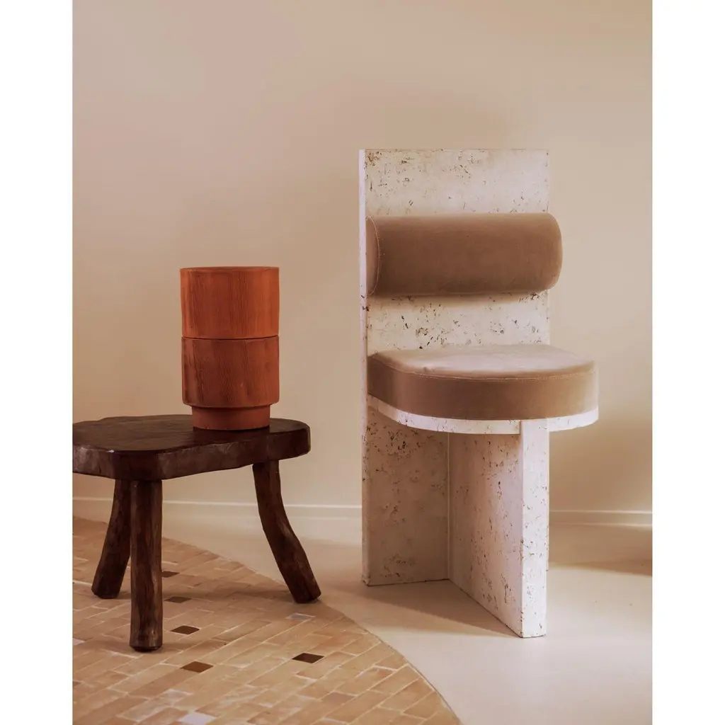 Object 04 beige seating by VoltaDimensions: D 45 x W 40 x H 90 cmMaterials: Cork and VelvetAlso available in diffentent colours. Please contact us.MEÏ COLLECTIONThe Meï collection was born from the desire to highlight the cork material. A material known for its common and popular use, cork deserves special attention in terms of its aesthetic, constructive and ecological properties. Starting from cork, the volta agency has developed with the Trizzano workshops several methods of compression to recycl this material. The patterns that were created then revealed all the subtlety of this material. To sublimate it even more, several colorimetric shades have been developed. The cork is thus bathed and colored, giving it a whole new image.The agencyVolta practices in the fields of architecture and interior design. Created in 2016 by Agathe Lavaud, she articulates her work around attention to detail and a tandem between contemporaneity and tradition. The agency considers each project as unique. She begins a personalized search for each, both in terms of volumes and material, guided by the existing context.