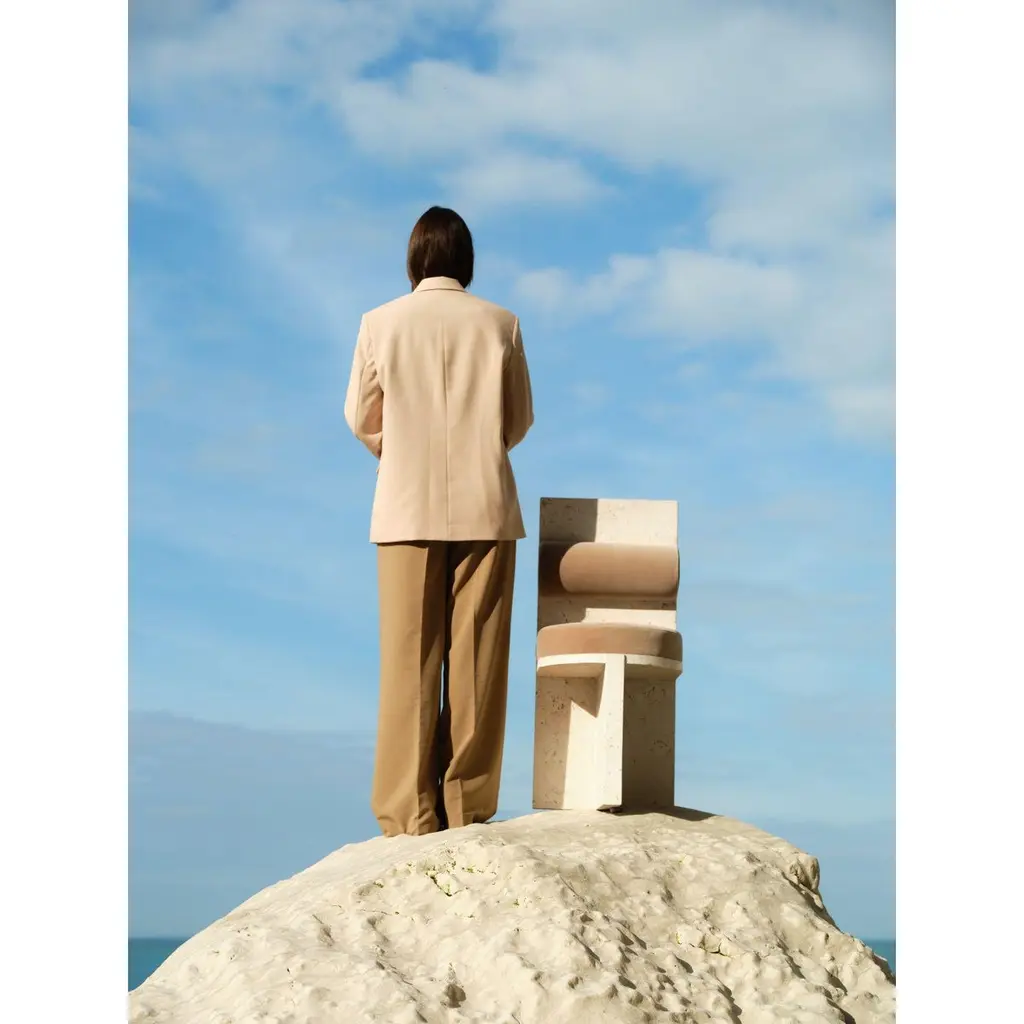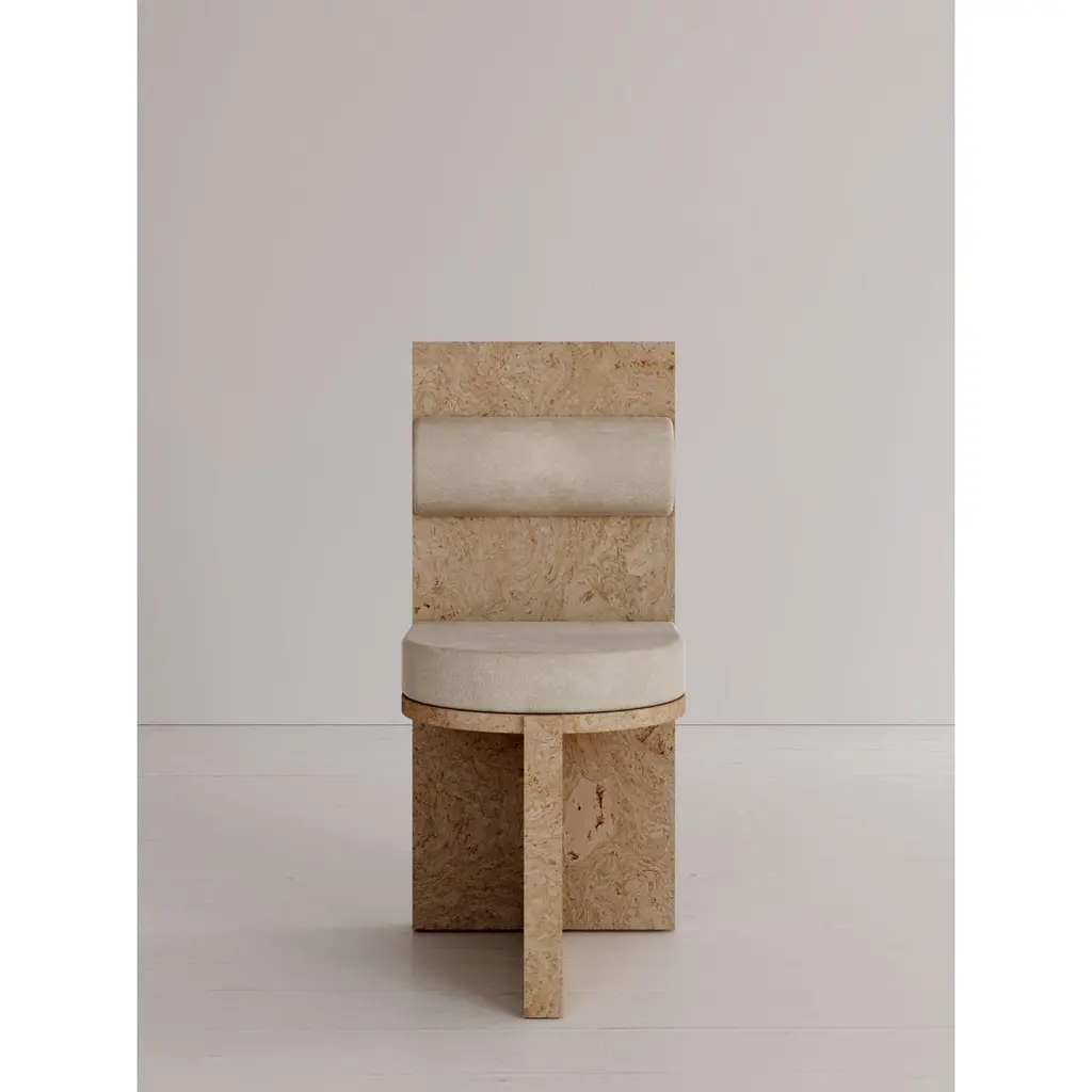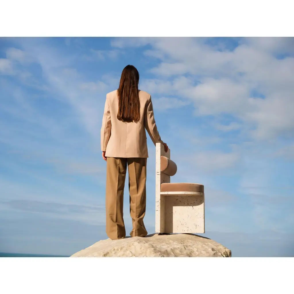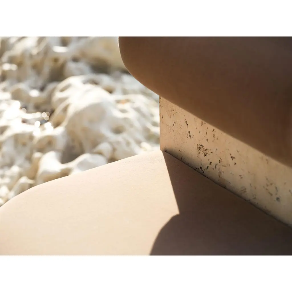 Object 04 beige seating by VoltaDimensions: D 45 x W 40 x H 90 cmMaterials: Cork and VelvetAlso available in diffentent colours. Please contact us.MEÏ COLLECTIONThe Meï collection was born from the desire to highlight the cork material. A material known for its common and popular use, cork deserves special attention in terms of its aesthetic, constructive and ecological properties. Starting from cork, the volta agency has developed with the Trizzano workshops several methods of compression to recycl this material. The patterns that were created then revealed all the subtlety of this material. To sublimate it even more, several colorimetric shades have been developed. The cork is thus bathed and colored, giving it a whole new image.The agencyVolta practices in the fields of architecture and interior design. Created in 2016 by Agathe Lavaud, she articulates her work around attention to detail and a tandem between contemporaneity and tradition. The agency considers each project as unique. She begins a personalized search for each, both in terms of volumes and material, guided by the existing context.