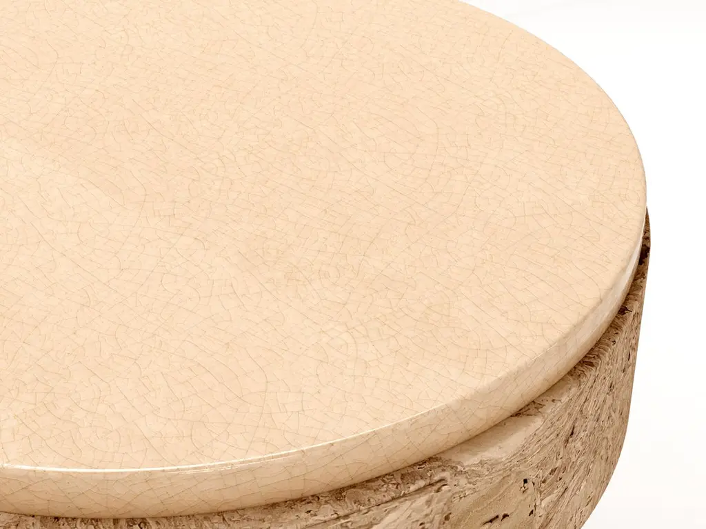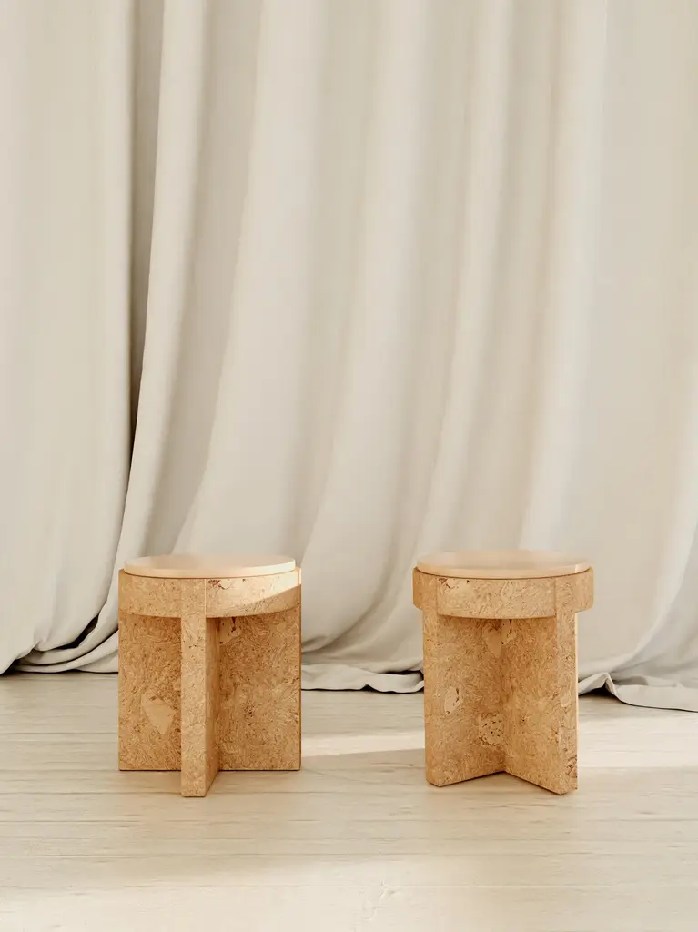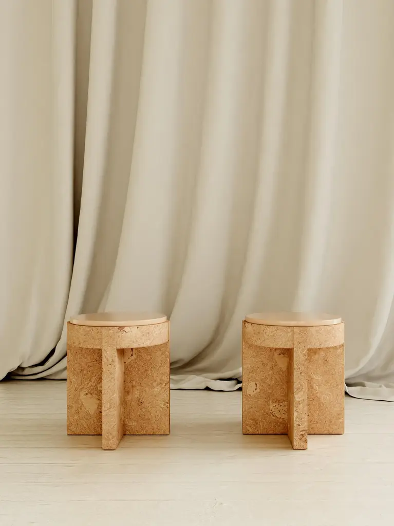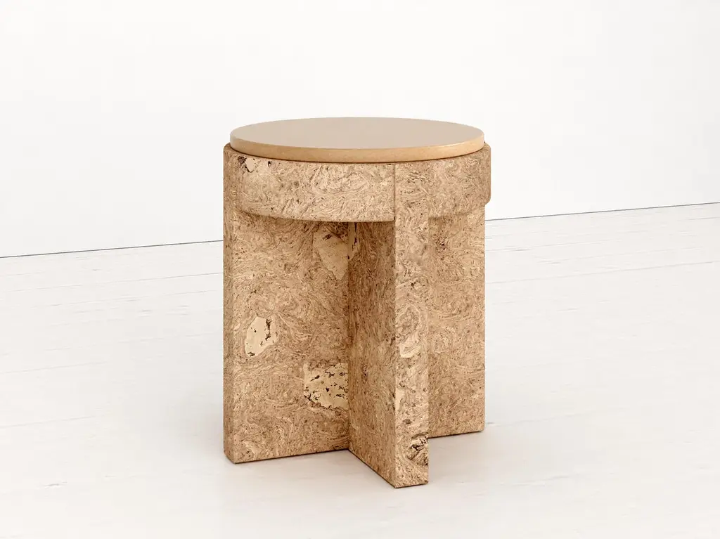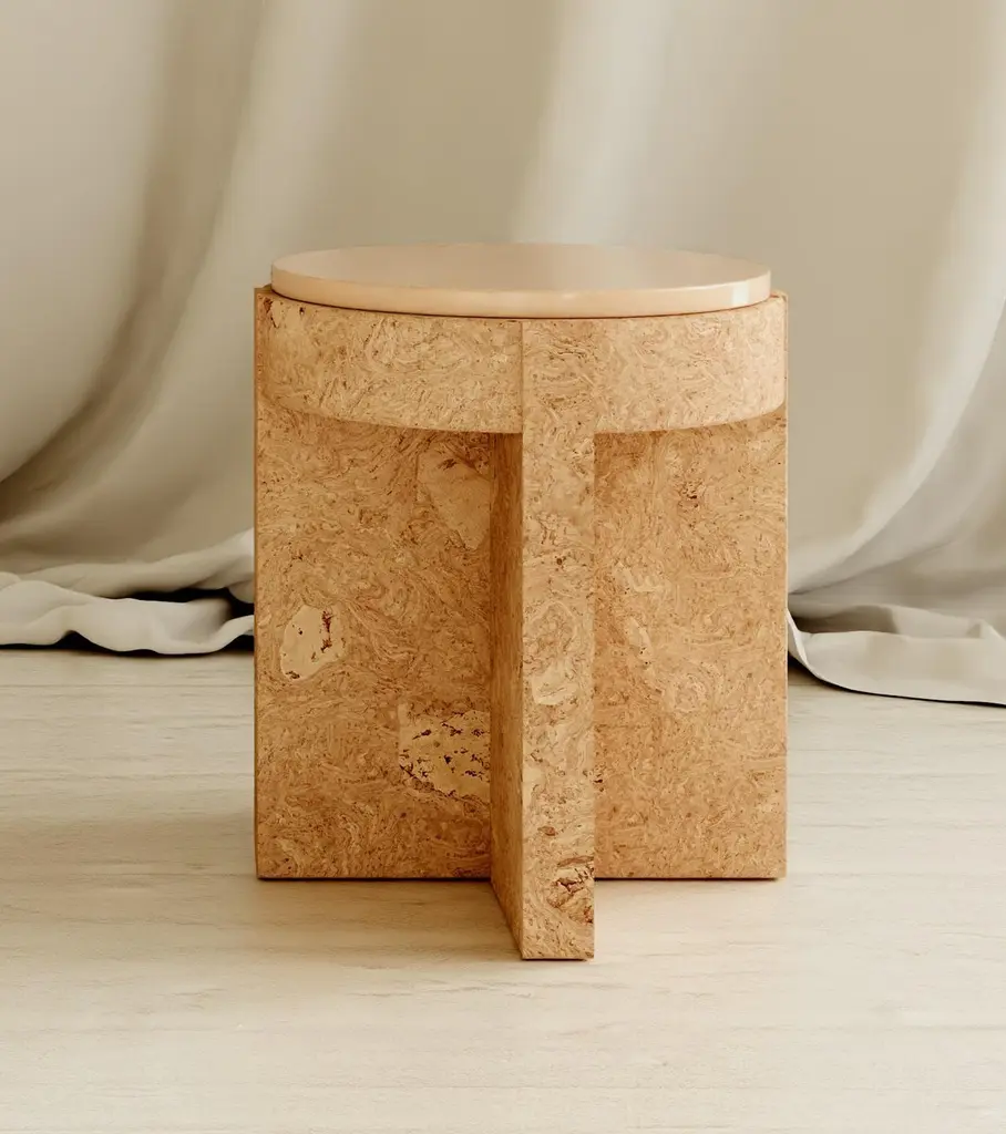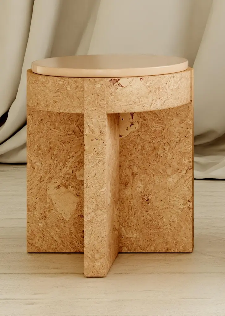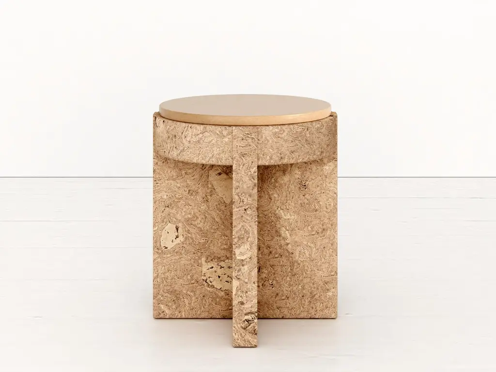 Object 05 Beige Seating by VoltaOne Of A Kind.Dimensions: D 40,5 x W 40,5 x H 47 cm.Materials: Cork and ceramic.Also available in diffentent colors. Please contact us.MEÏ COLLECTIONThe Meï collection was born from the desire to highlight the cork material. A material known for its common and popular use, cork deserves special attention in terms of its aesthetic, constructive and ecological properties. Starting from cork, the volta agency has developed with the Trizzano workshops several methods of compression to recycl this material. The patterns that were created then revealed all the subtlety of this material. To sublimate it even more, several colorimetric shades have been developed. The cork is thus bathed and colored, giving it a whole new image.The agencyVolta practices in the fields of architecture and interior design. Created in 2016 by Agathe Lavaud, she articulates her work around attention to detail and a tandem between contemporaneity and tradition. The agency considers each project as unique. She begins a personalized search for each, both in terms of volumes and material, guided by the existing context.