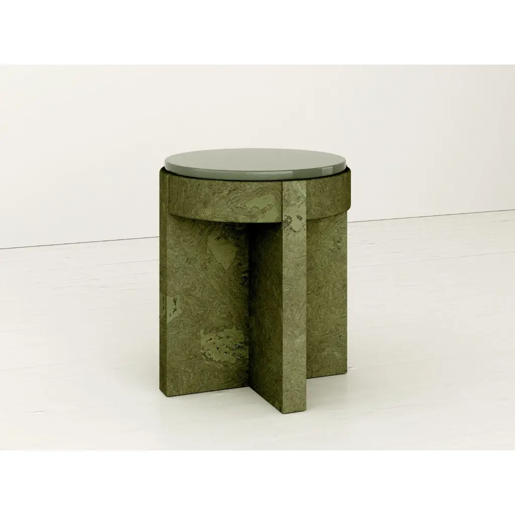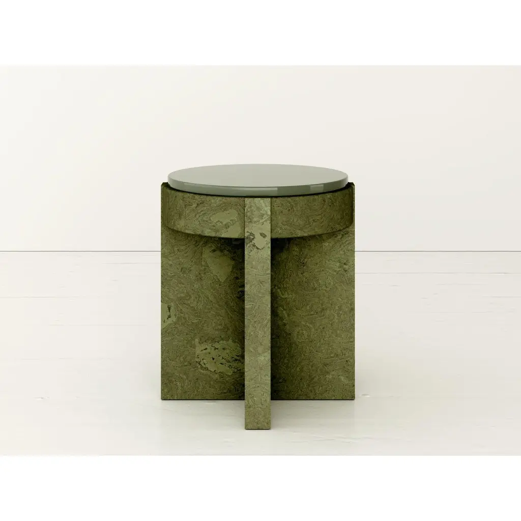 Object 05 Green Seating by VoltaOne Of A Kind.Dimensions: D 40,5 x W 40,5 x H 47 cm.Materials: Cork and ceramic.Also available in diffentent colors. Please contact us.MEÏ COLLECTIONThe Meï collection was born from the desire to highlight the cork material. A material known for its common and popular use, cork deserves special attention in terms of its aesthetic, constructive and ecological properties. Starting from cork, the volta agency has developed with the Trizzano workshops several methods of compression to recycl this material. The patterns that were created then revealed all the subtlety of this material. To sublimate it even more, several colorimetric shades have been developed. The cork is thus bathed and colored, giving it a whole new image.The agencyVolta practices in the fields of architecture and interior design. Created in 2016 by Agathe Lavaud, she articulates her work around attention to detail and a tandem between contemporaneity and tradition. The agency considers each project as unique. She begins a personalized search for each, both in terms of volumes and material, guided by the existing context.