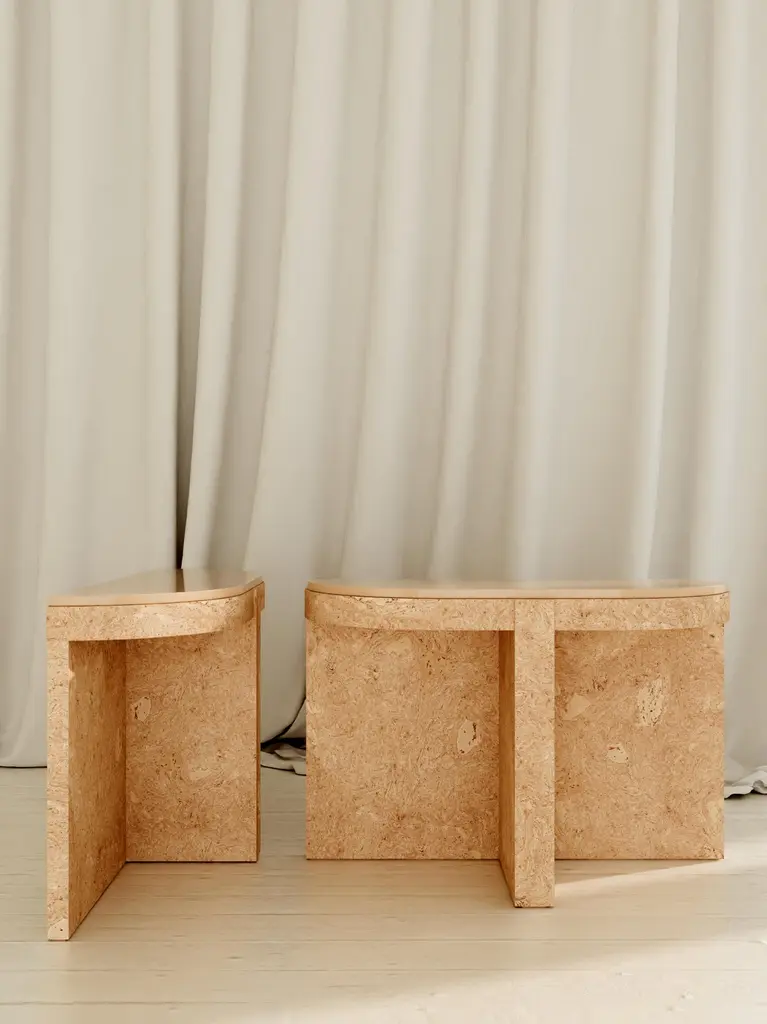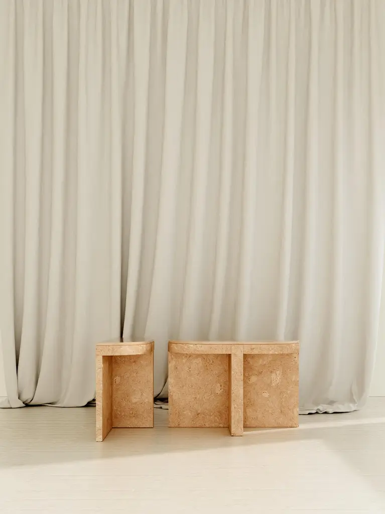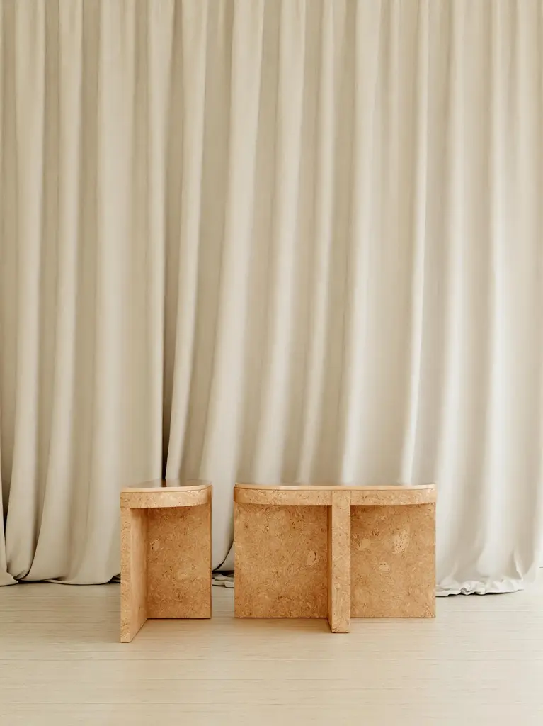 Object 06 Beige Seating by VoltaOne Of A Kind.Dimensions: D 80 x W 200 x H 75 cm.Materials: Cork and ceramic.Also available in diffentent colors. Please contact us.MEÏ COLLECTIONThe Meï collection was born from the desire to highlight the cork material. A material known for its common and popular use, cork deserves special attention in terms of its aesthetic, constructive and ecological properties. Starting from cork, the volta agency has developed with the Trizzano workshops several methods of compression to recycl this material. The patterns that were created then revealed all the subtlety of this material. To sublimate it even more, several colorimetric shades have been developed. The cork is thus bathed and colored, giving it a whole new image.The agencyVolta practices in the fields of architecture and interior design. Created in 2016 by Agathe Lavaud, she articulates her work around attention to detail and a tandem between contemporaneity and tradition. The agency considers each project as unique. She begins a personalized search for each, both in terms of volumes and material, guided by the existing context.