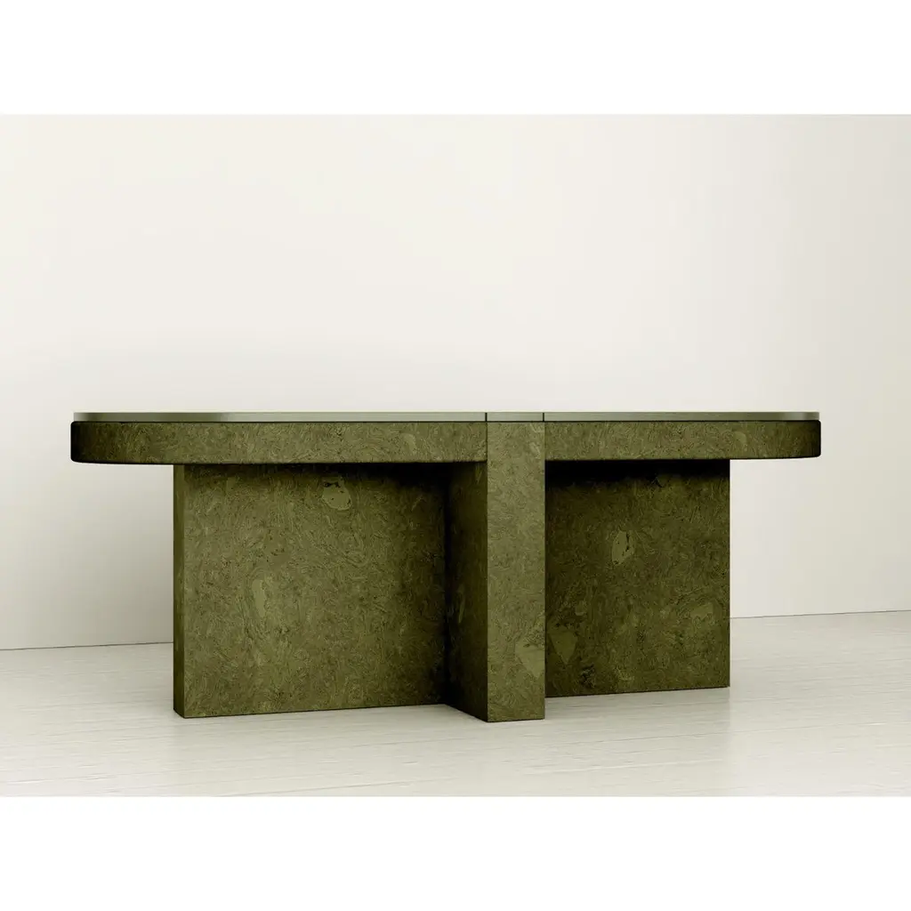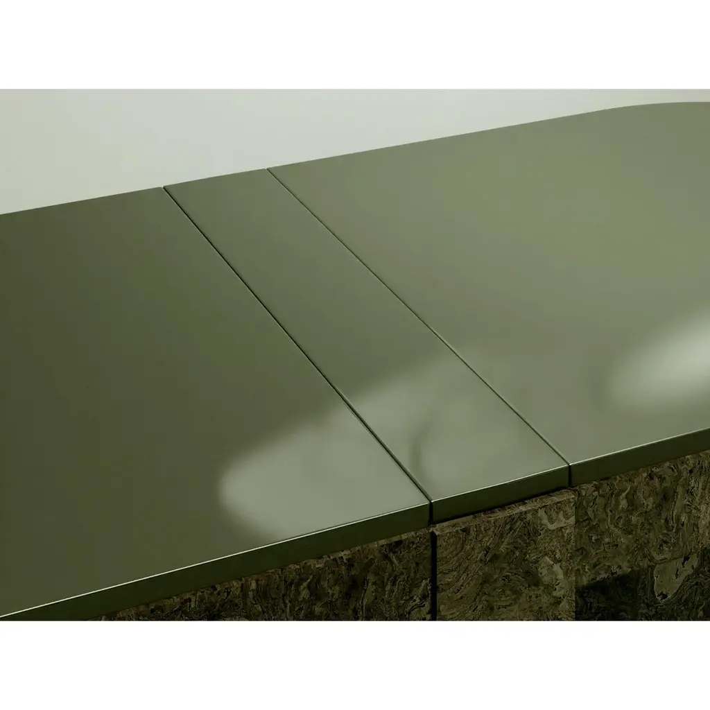 Object 06 Green Seating by VoltaOne Of A Kind.Dimensions: D 80 x W 200 x H 75 cm.Materials: Cork and ceramic.Also available in diffentent colors. Please contact us.MEÏ COLLECTIONThe Meï collection was born from the desire to highlight the cork material. A material known for its common and popular use, cork deserves special attention in terms of its aesthetic, constructive and ecological properties. Starting from cork, the volta agency has developed with the Trizzano workshops several methods of compression to recycl this material. The patterns that were created then revealed all the subtlety of this material. To sublimate it even more, several colorimetric shades have been developed. The cork is thus bathed and colored, giving it a whole new image.The agencyVolta practices in the fields of architecture and interior design. Created in 2016 by Agathe Lavaud, she articulates her work around attention to detail and a tandem between contemporaneity and tradition. The agency considers each project as unique. She begins a personalized search for each, both in terms of volumes and material, guided by the existing context.