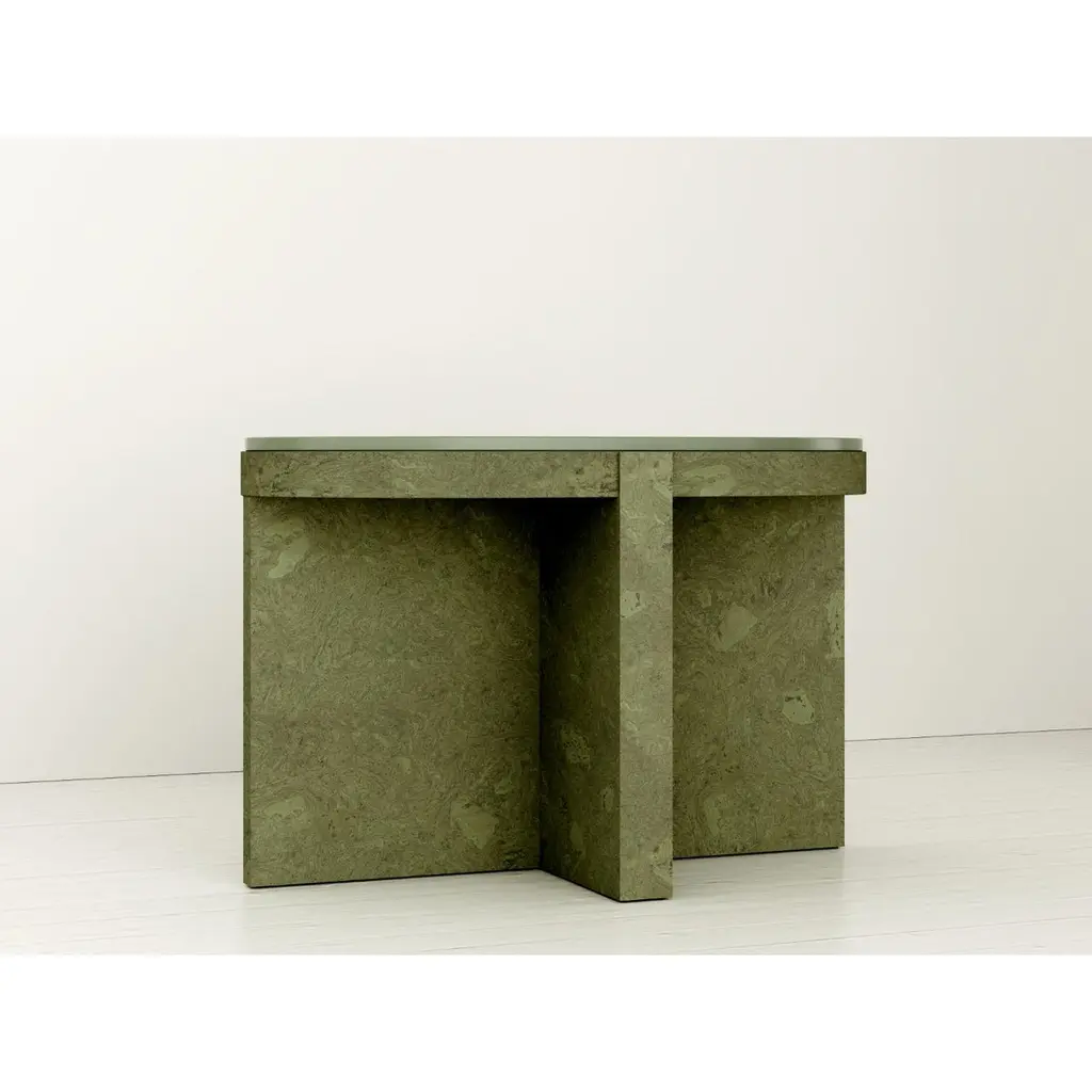 Object 07 Green Seating by VoltaOne Of A Kind.Dimensions: D 34,5 x W 120 x H 80 cm.Materials: Cork and ceramic.Also available in diffentent colors. Please contact us.MEÏ COLLECTIONThe Meï collection was born from the desire to highlight the cork material. A material known for its common and popular use, cork deserves special attention in terms of its aesthetic, constructive and ecological properties. Starting from cork, the volta agency has developed with the Trizzano workshops several methods of compression to recycl this material. The patterns that were created then revealed all the subtlety of this material. To sublimate it even more, several colorimetric shades have been developed. The cork is thus bathed and colored, giving it a whole new image.The agencyVolta practices in the fields of architecture and interior design. Created in 2016 by Agathe Lavaud, she articulates her work around attention to detail and a tandem between contemporaneity and tradition. The agency considers each project as unique. She begins a personalized search for each, both in terms of volumes and material, guided by the existing context.