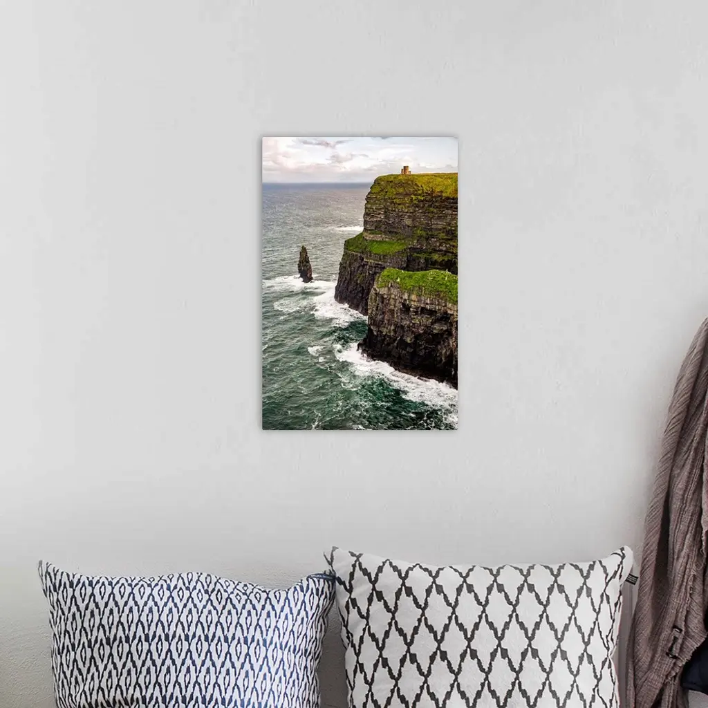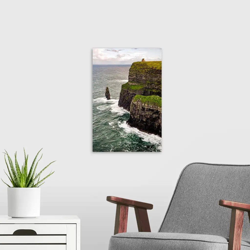 Vertical photograph of O'Brien's Tower, marking the highest point of the Cliffs of Moher in Ireland.