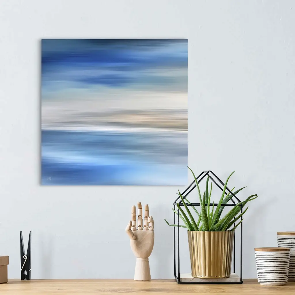 The soothing blues and relaxing sandy tones of a Carmel ocean scene will brighten any room.
