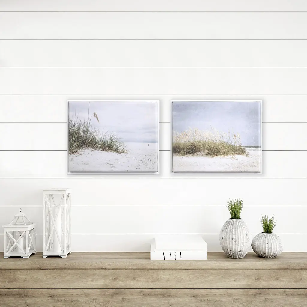 Set of two ocean collection is gallery wrapped over a solid wood stretcher bar with white frame.