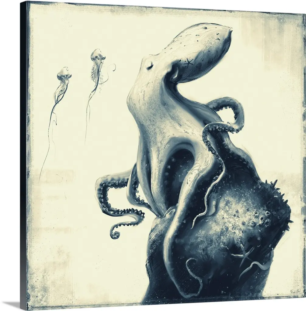 Ocean Octopus On Black wall art for home and office decor. Discover canvas art prints, photos, mural, big canvas art and framed wall art in GreatBigCanvas.com's varied collections.