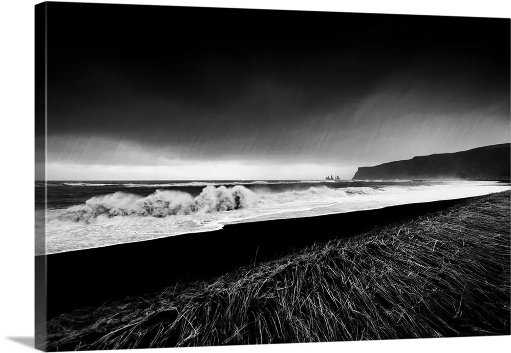 A photograph of a dark coastline under a dark sky.