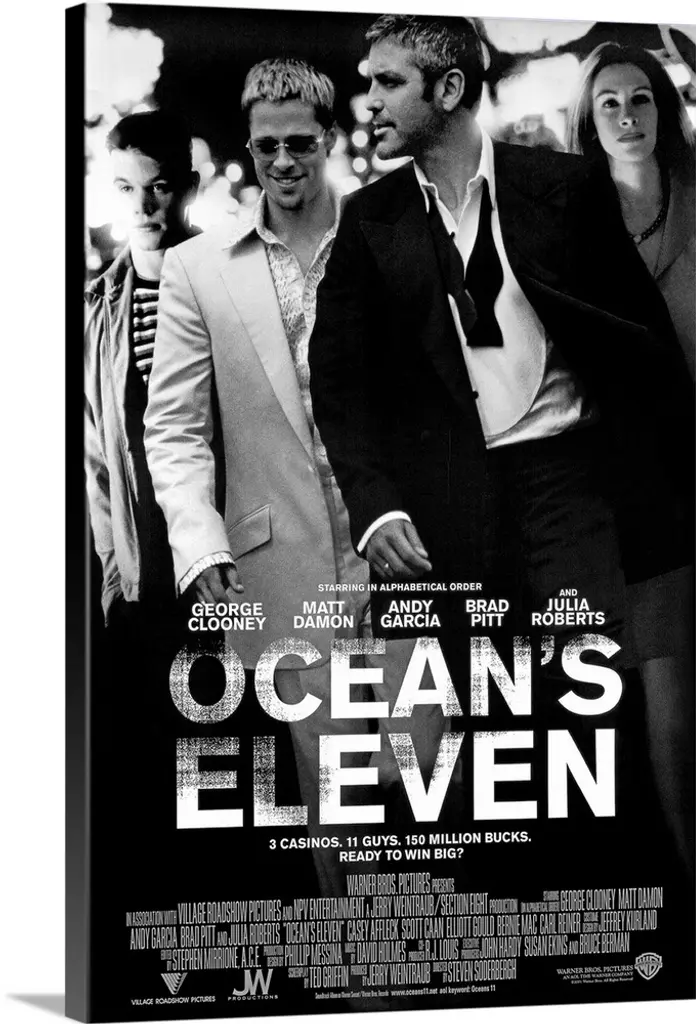 Stylish, fun remake of the 1960 Rat Pack caper flick measures up to the original in Cool Factor and surpasses it in plot and action. In this version, Danny Ocean (Clooney) is an ex-con with a taste for the grift and a grudge against powerful casino owner Benedict (Garcia). Backed by an eclectic, amusingly quirky crew, he encounters complications when his ex (Roberts) turns out to be involved with Benedict. Great cast looks like they're having a blast (especially Gould and Reiner, who make the most of small but showy roles) as Soderburgh's Midas touch streak continues.