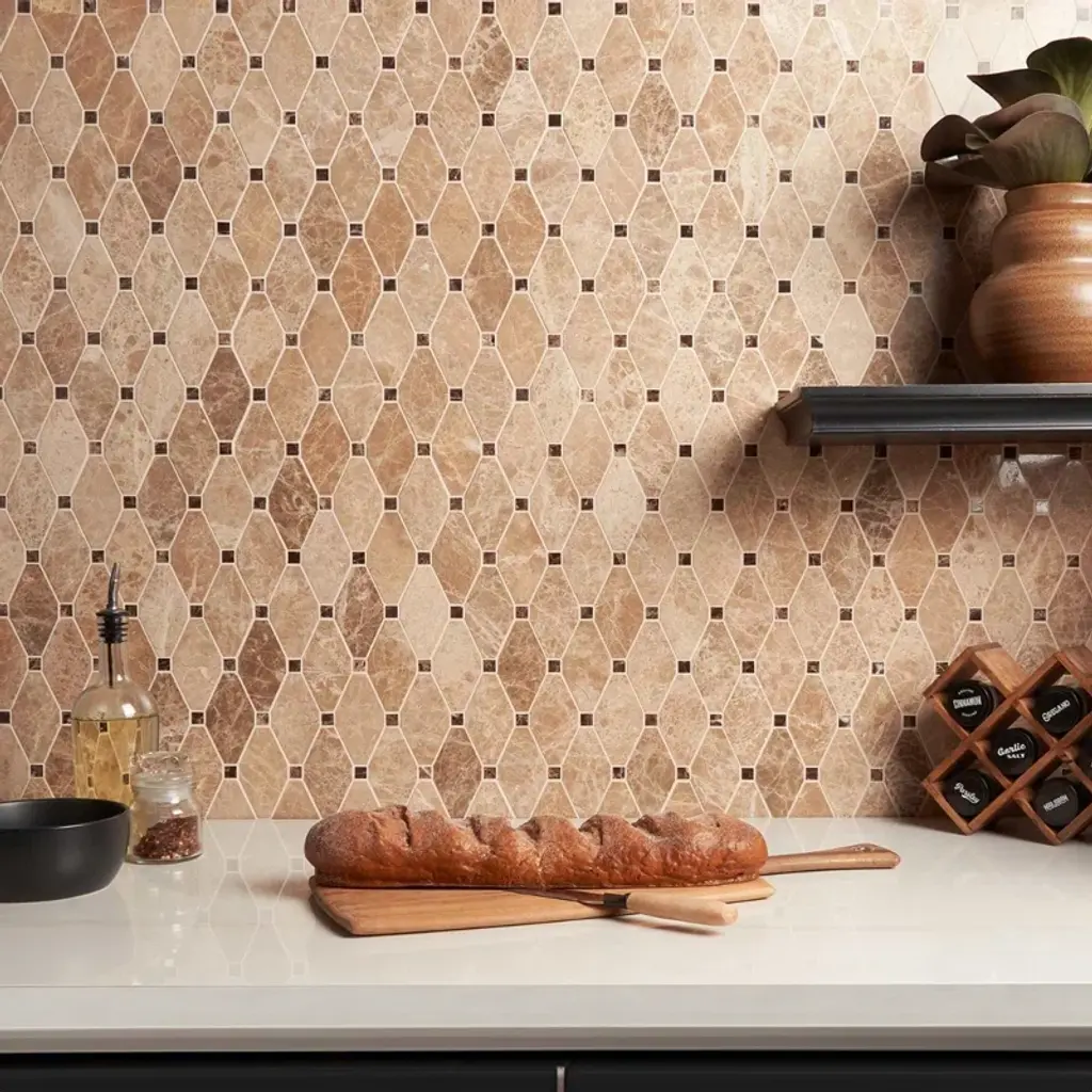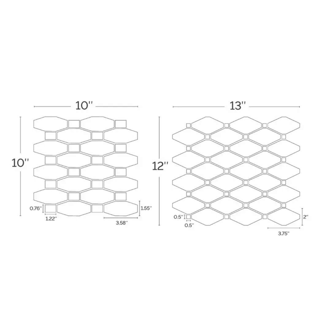 One of the most popular marbles in the world, Diapson's timeless beauty opens doors to endless design opportunities. Perfect for a bathroom floor or backsplash application, this geometric mosaic is sure to be the focal point of your design. Its stunning design and unique pattern of octagons and diamonds will bring warmth and a natural ambiance to your home for many years to come.