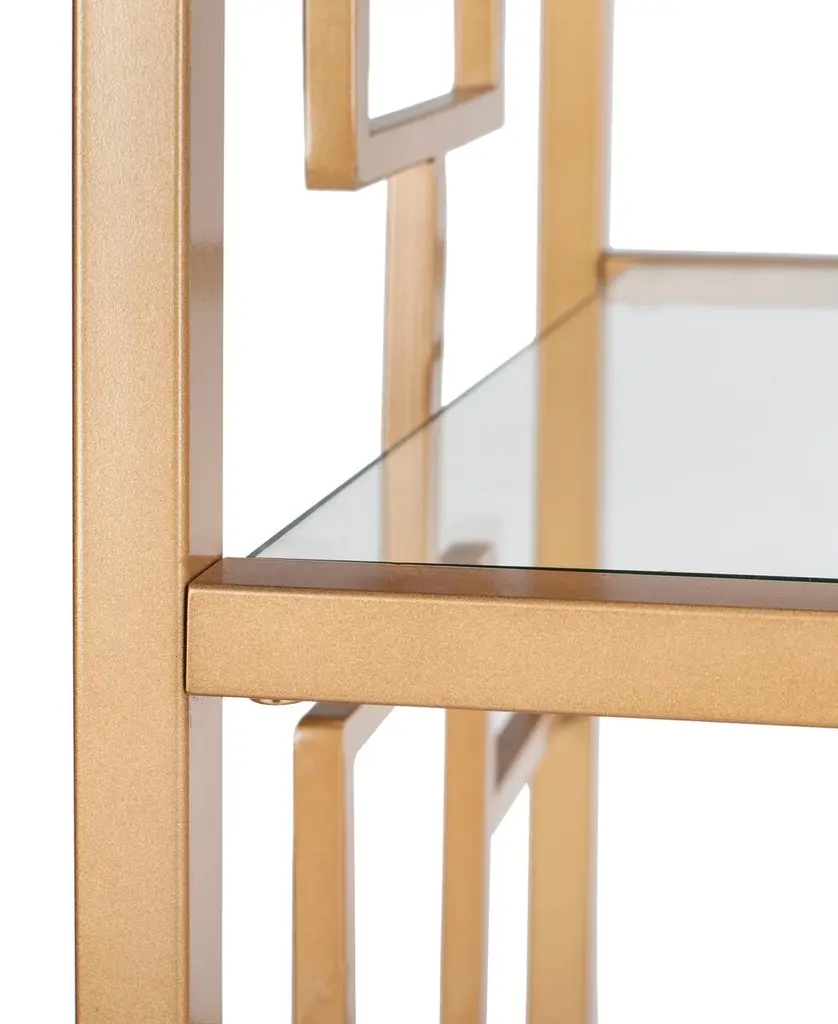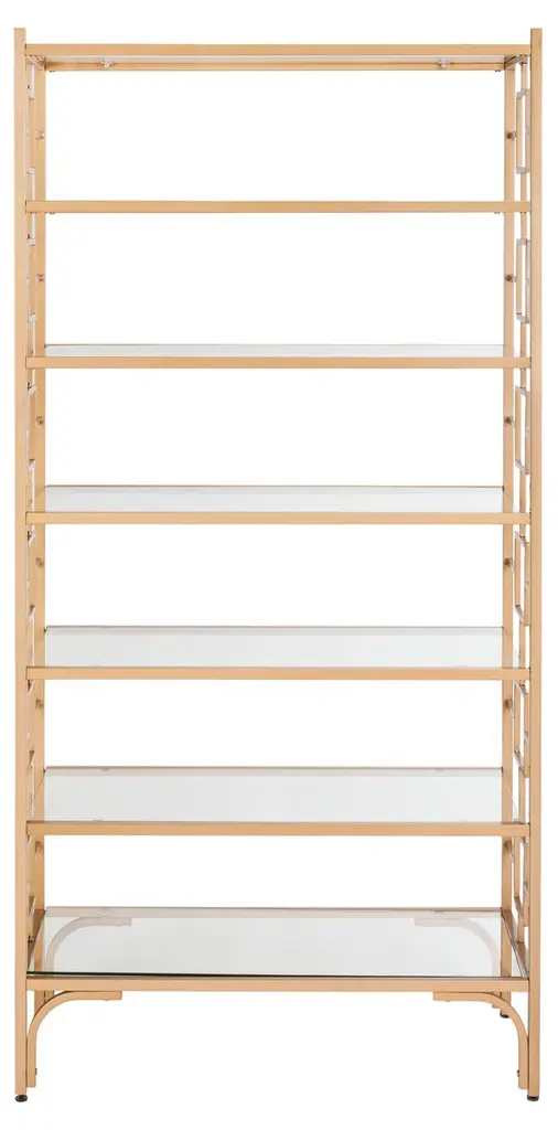 Glam up any space with this towering étagère, crafted of steel with a chic geometric design and luxurious golden finish. Its seven clear glass shelves which provide plenty of space to display favorite home accents.