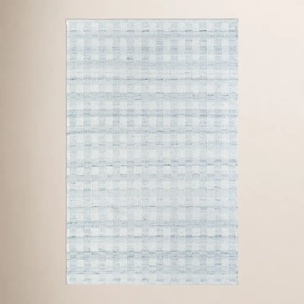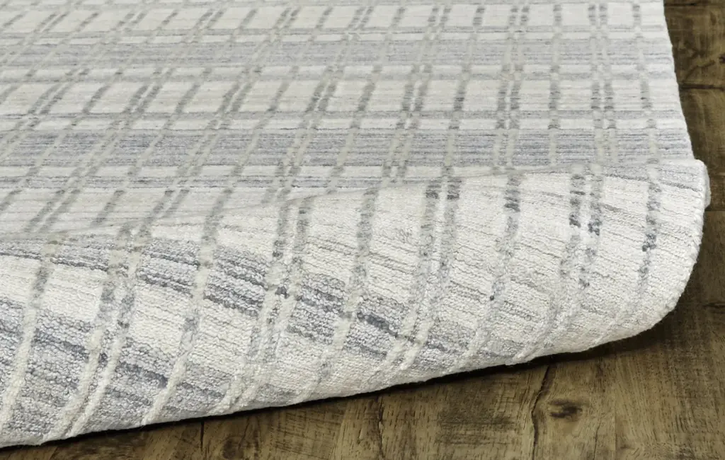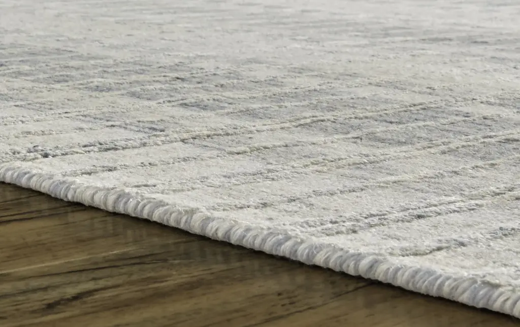 Collection: Odell Colors: Ivory, Blue Construction: Hand Woven Material: Face: Viscose, Wool Pile: Low Pile Pile Height: 0.37" Styles: Transitional,Casual Backing: N/A Made In: India Thickness: 0.37" Price Range: $$$$$ (Affordable)