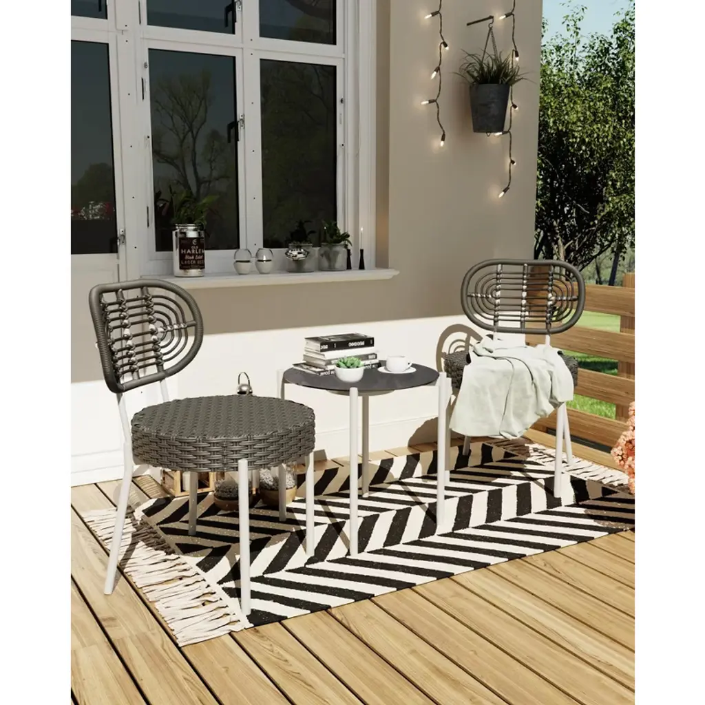 【Sturdy & Durable】 This 3 piece bistro set is crafted from premium PE rattan and a reinforced steel frame, making it a long-lasting choice for any weather. Whether rain or shine, this outdoor bistro set resists fading, cracking, and splitting, ensuring your small outdoor table and chairs look beautiful and stay sturdy year after year