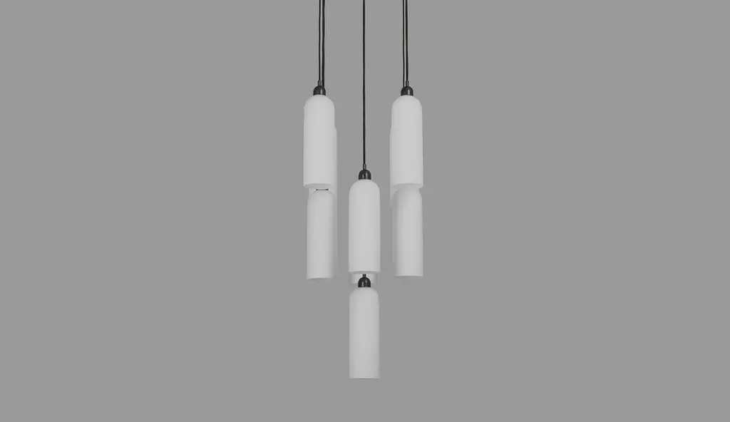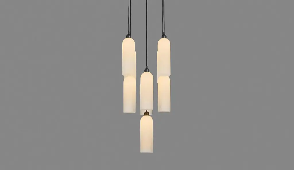 A gleaming constellation of nine opal glass arches strike the eye with their sleek arrangement and brass accents. This design is a study in rhythm, the repeated forms make a melodious choir transporting us with their glowing voices.Available in our three signature finishes: Lacquered Burnished Brass (LBB); Black Gunmetal (BGM); Polished Nickel (PN)Odyssey CollectionCome with us on a voyage. To a distant dreamscape where curious wanderers roam. Captured in motion, these gentle machines are destined for the future even as they recall the comfort of home.Playful varieties of shape are composed through a geometric language of pure form, transporting us to scales, and places from our memory and imagination.Dimensions:Diameter: Ø 382 mm / Ø 15.0''Height: 927 mm - 3300 mm / 36.5'' - 129.9''Weight: 14.6 kg / 32.2 lbLight sources available:LED Bulb (included) 9 x 5 W.
