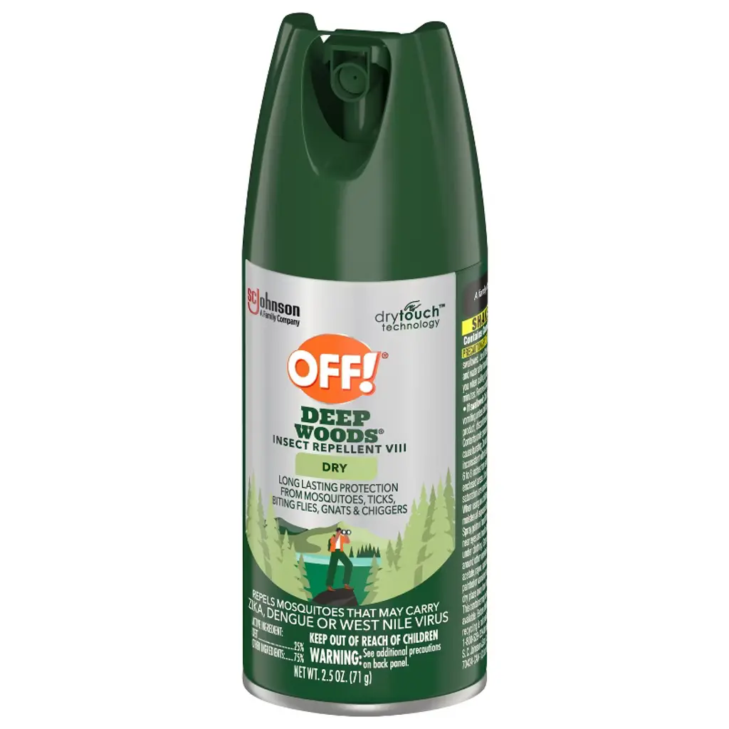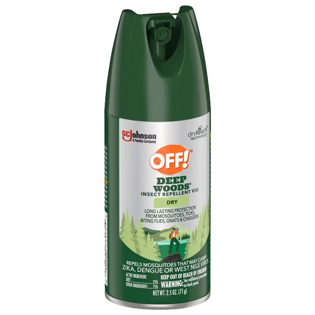 OFF! Deep Woods Dry Insect Repellent VIII repels mosquitoes that may carry the Zika, Dengue, or West Nile viruses. You won’t know you’re wearing it -- but the mosquitoes will. It’s an ideal dry bug repellent for fishing, hiking and hunting. When enjoying the great outdoors, no one wants to wear a greasy bug spray. This formula provides the proven non-oily, non-greasy protection of OFF! Deep Woods, so you can keep living life your way. Keep out of reach of children and pets. See the label for other precautions and usage directions.