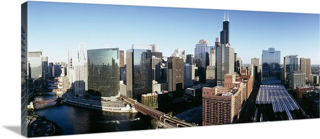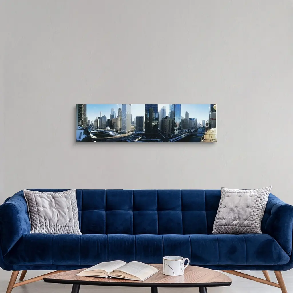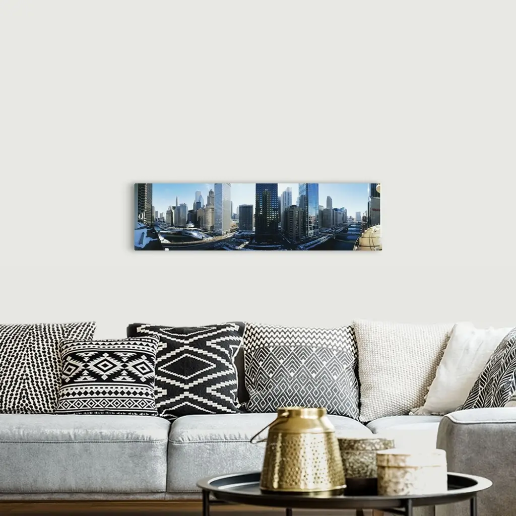 Office buildings along a river, Chicago River, Chicago, Illinois wall art for home and office decor. Discover canvas art prints, photos, mural, big canvas art and framed wall art in GreatBigCanvas.com's varied collections.