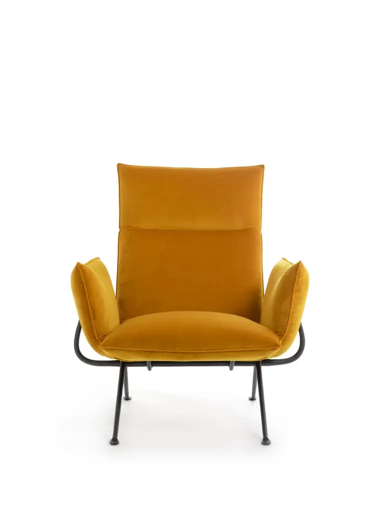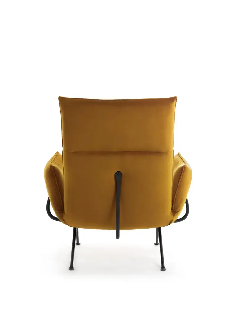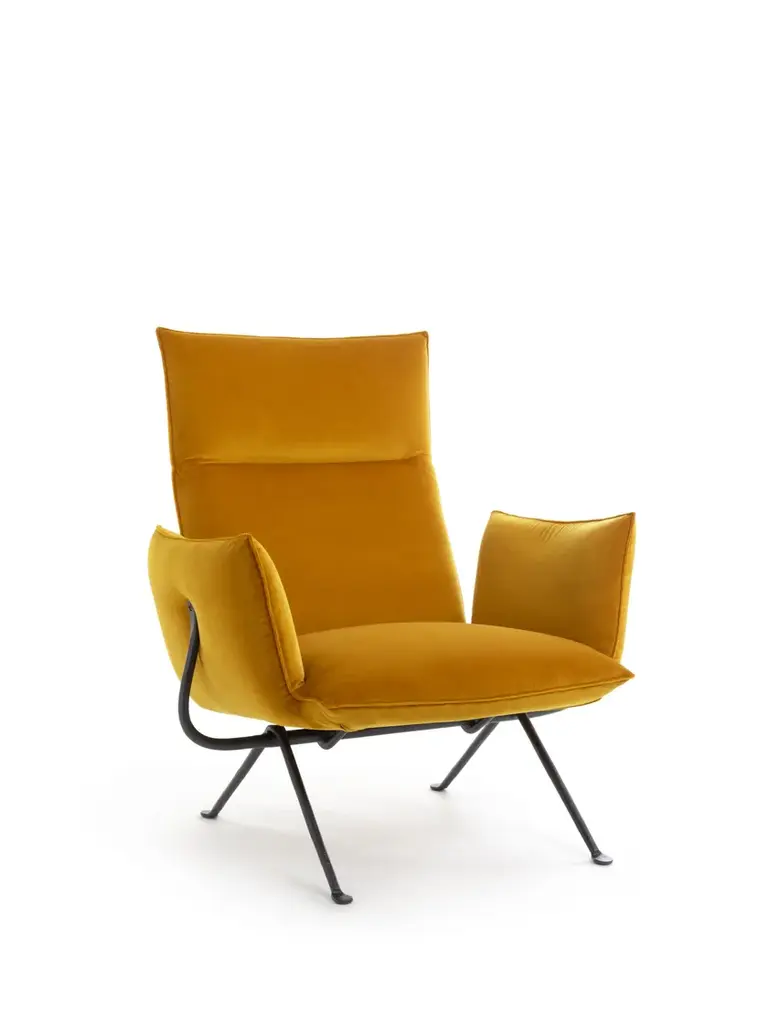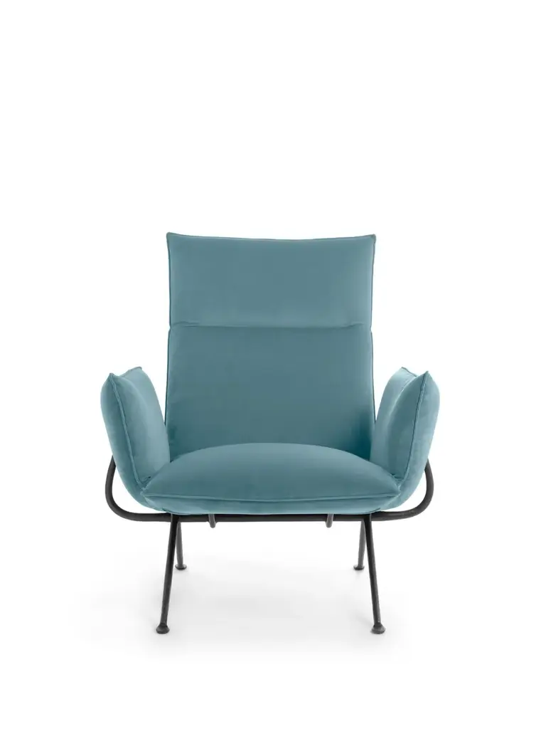 Officina is a fabric armchair with high back.Officina High Back was developed to meet a growing need for greater comfort at home and public spaces.It features a high backrest and generous seat that creates inviting aesthetics with a high level of comfort. Combined with the ottoman they make the perfect pair to lean back and relax.The armchair is a versatile and functional extension of the Officina family suited to a wide variety of domestic and public settings.Material: frame in wrought iron, galvanized or painted in polyester powder. Upholstery in expanded polyurethane with removable cover in fabric Kvadrat (Divina MD, Divina Mélange, Hero, Vidar, Pilot) or Torri Lana (Rico) or Glamour (Azimut, Amby, Globo, Shee) or in leather. Optional: loinrest cushion with removable cover.Italian design and traditional craftsmanship are harmoniously combined in the Magis Officina collection, which explores a new creative language through the ancient fabrication process that is iron forging. Throughout history, this technique has been used to create an infinite number of everyday objects and decorative artefacts. The products in this collection feature a typical wrought iron finish that makes them living design objects, and their distinctly industrial feel is guaranteed to create interesting contrasts in any setting. Following the tables, chairs and stools, the collection expands further with a series of accessories, with a low chair, with a twoseater bench and a collection of upholstered pieces (armchair, ottoman, two and threeseater sofas). All these pieces feature a forged iron structure, with the allure of a raw material handed down through the centuries, alive, with those slight imperfections that make each item in this collection unique, with a profoundly refined and elegant spirit.